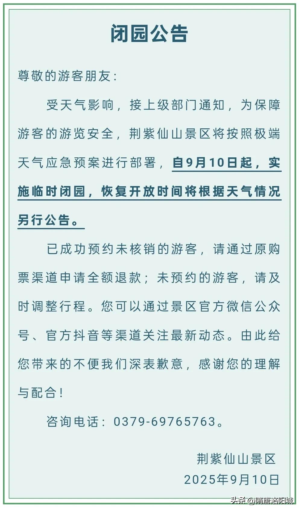 【龙潭大峡谷荆紫仙山景区即日起临时闭园!切勿跑空!】