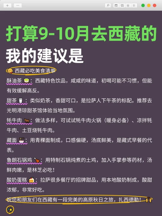 酥油茶 🍵:西藏特色饮品,咸咸的味道,初喝可能不习惯,但能有效缓解高反。