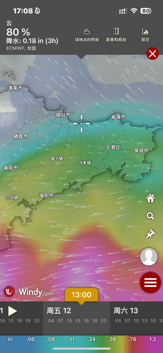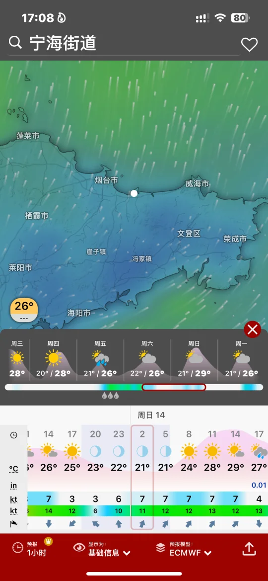 Hi.宝子们好,欢迎来烟台旅游观光!天气基本三天内准确度高!