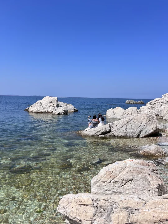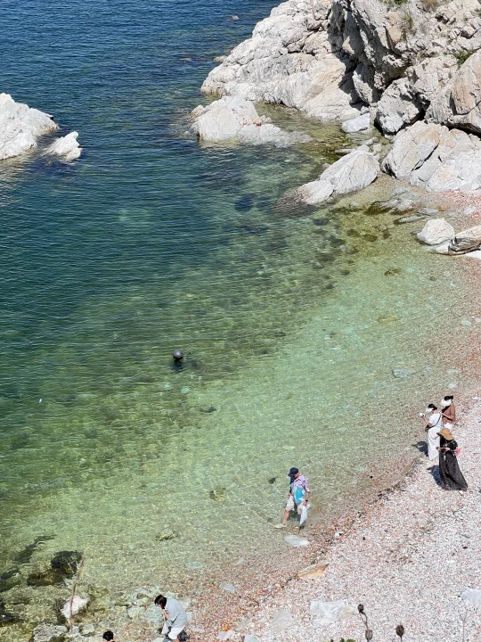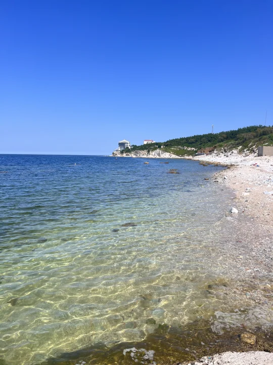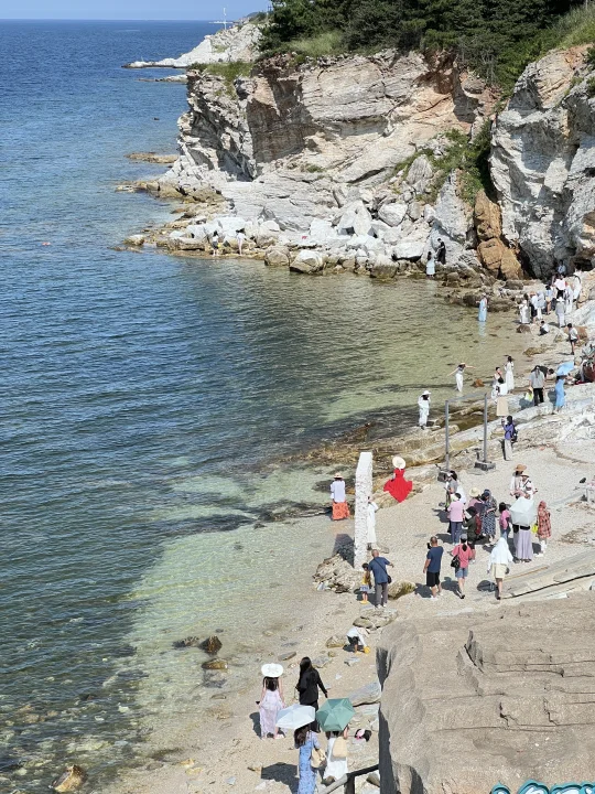 烟台 养马岛 实况烟台旅游烟台旅行没有被污染的海 带你去看海海边玻璃海果冻海 逐渐恢复正常了,除了莲花夕照小莲花还有点海带,一切回归自然