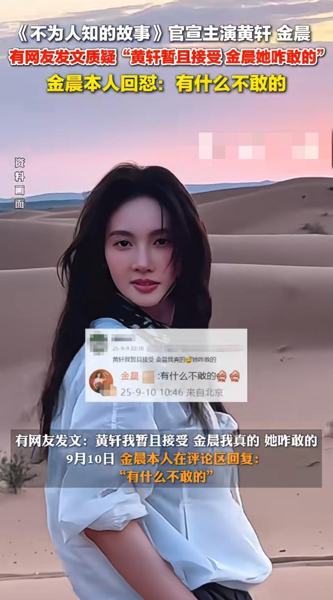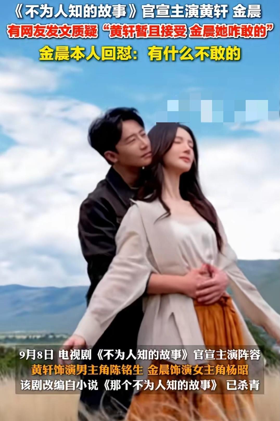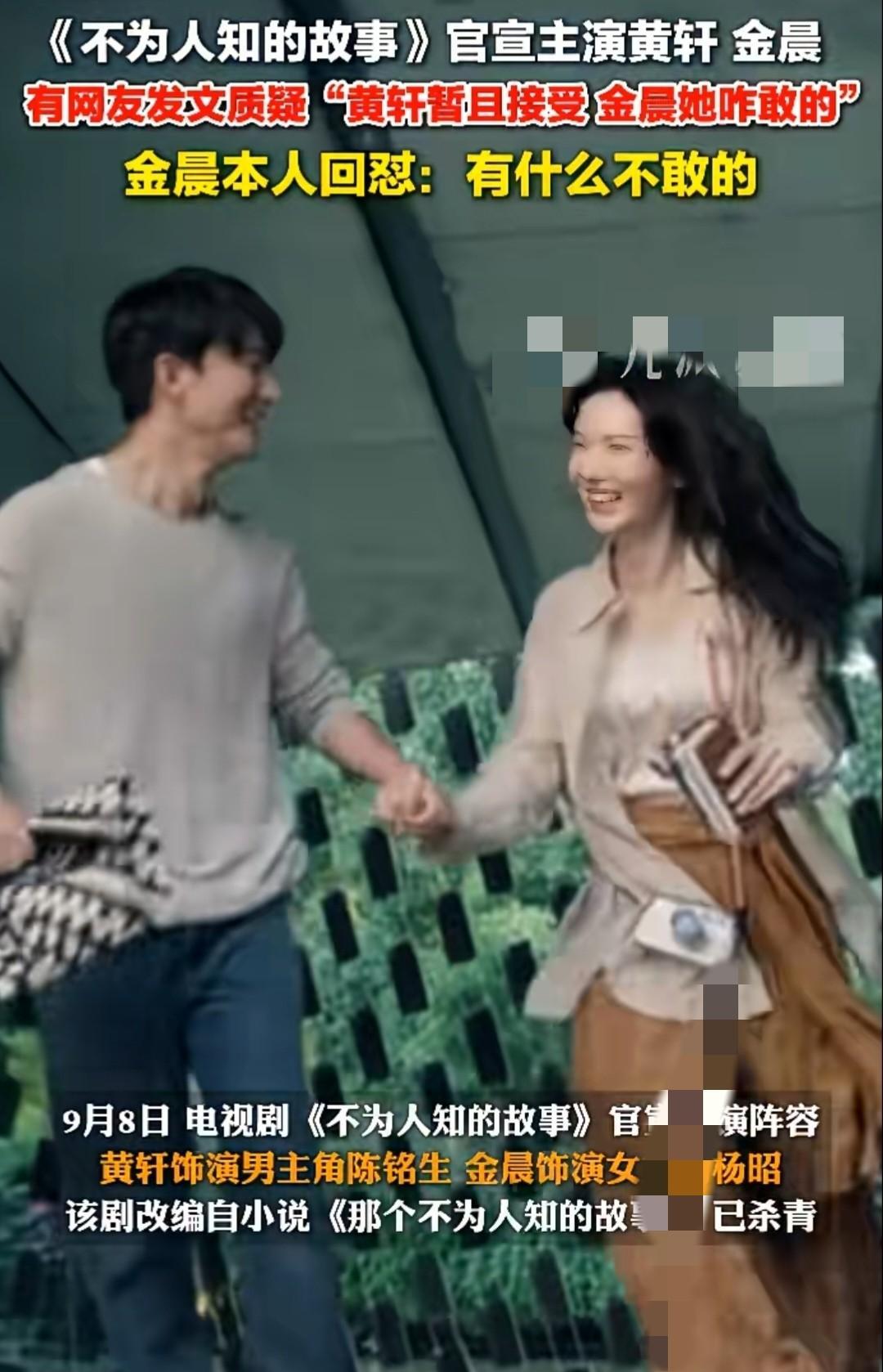 我从九派新闻那边看到的一个消息,就新剧《不为人知的故事》官宣男主黄轩,女主金晨这