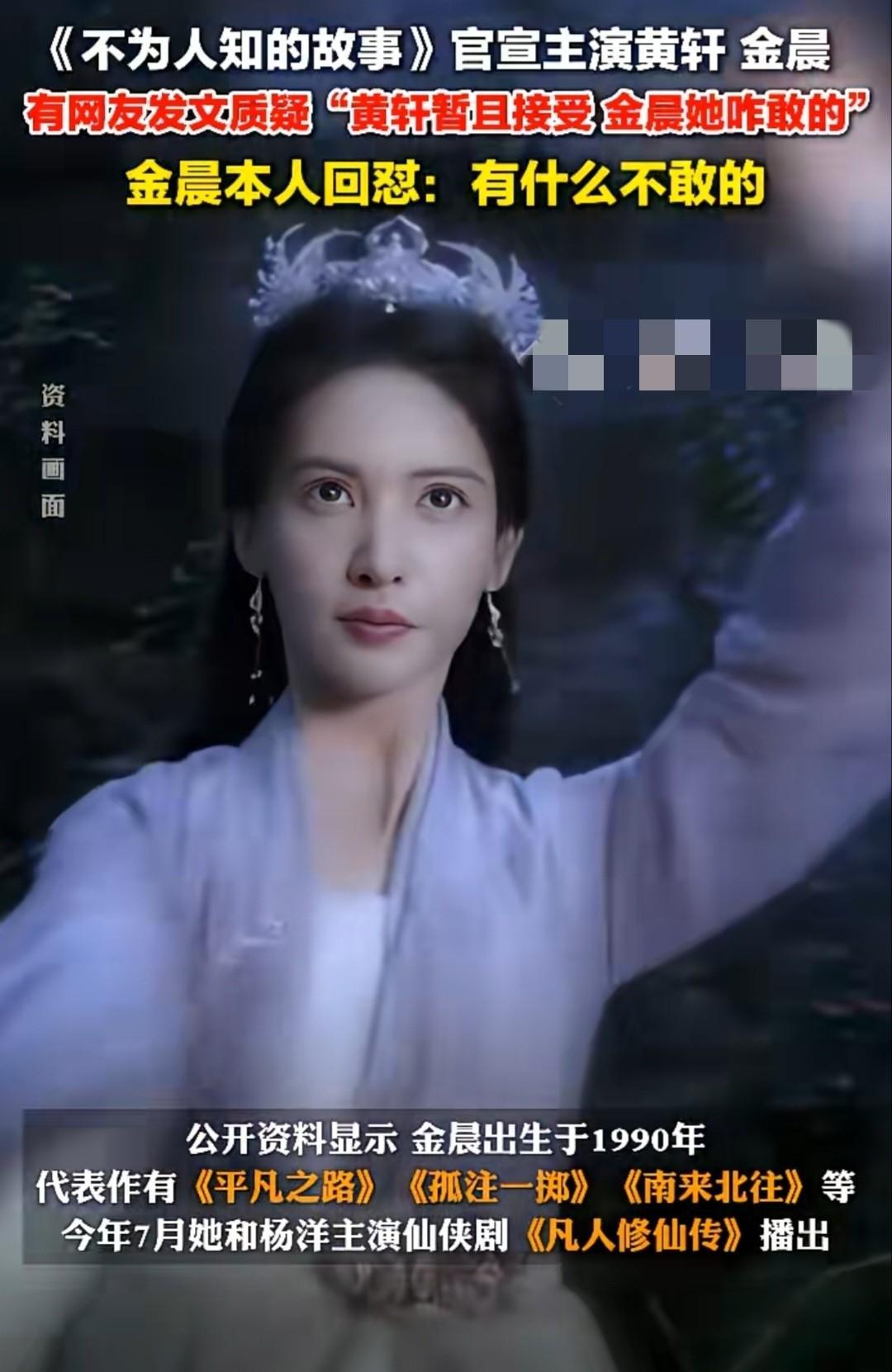 我从九派新闻那边看到的一个消息,就新剧《不为人知的故事》官宣男主黄轩,女主金晨这事,其实真的没什么看法。 不过网上就不一样了,对于黄轩好像没什么人谈论,倒是金晨的影响力够大呀,才官宣而已,就闹得沸沸扬扬。 我其实对她没有什么看法,毕竟她演的电视剧能看我就看,坚持不下去就算了呗,倒不至于攻击她的人。 当然,或许她的眼缘比较浅,大家第一眼没喜欢上,后来可能就关注小了。 #金晨# #黄轩# #不为人知的故事# #黄轩金晨# #新剧情报站# #金晨状态绝了#