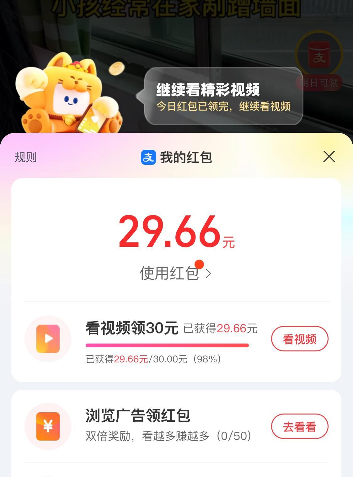 近期支付宝视频红包,说友好还真友好;说不友好,管叫你还差1分钱也是无可奈何得不到