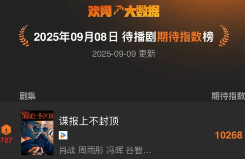 肖战的谍报上不封顶,就放了个预告片,各大数据就全部登顶了