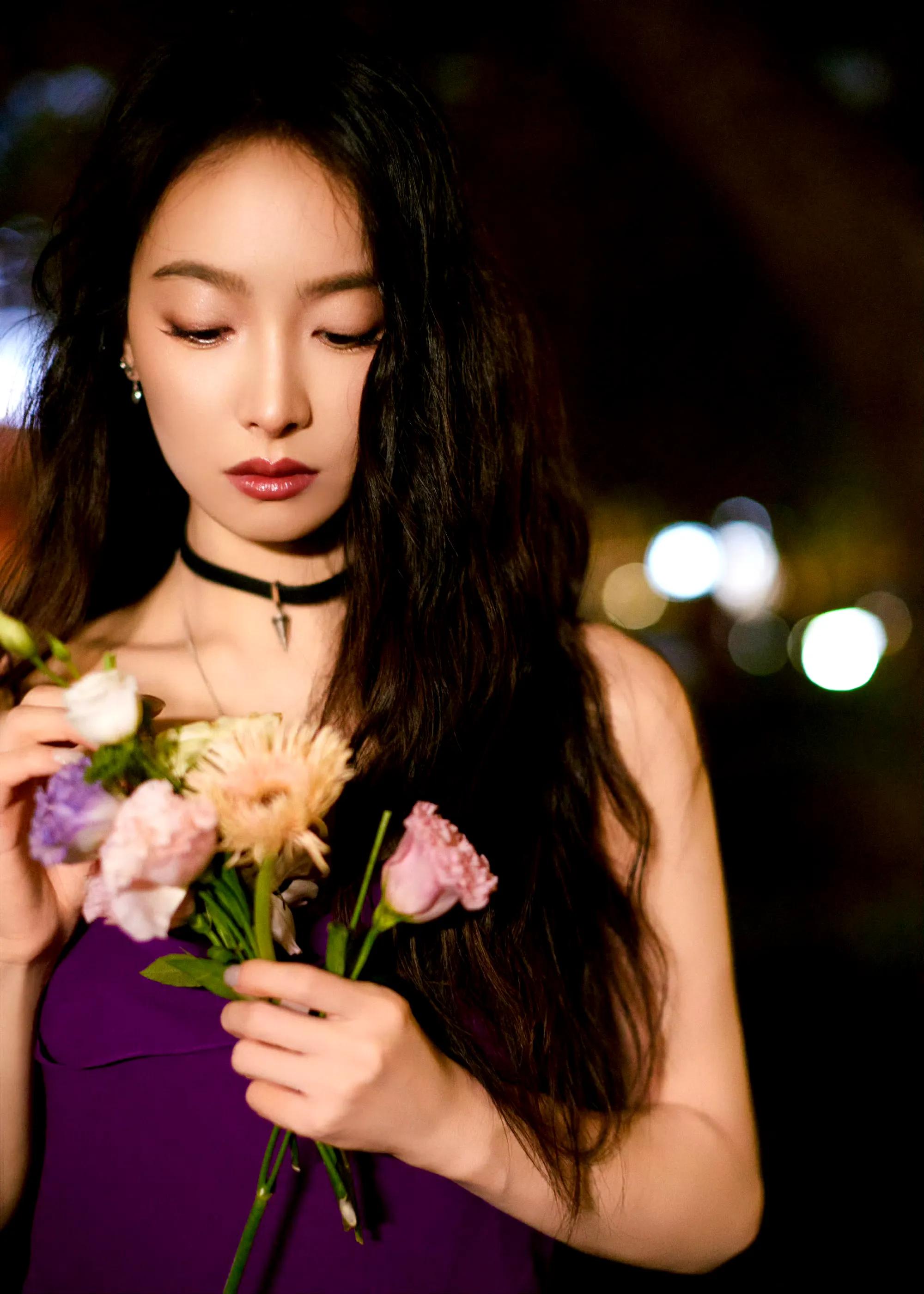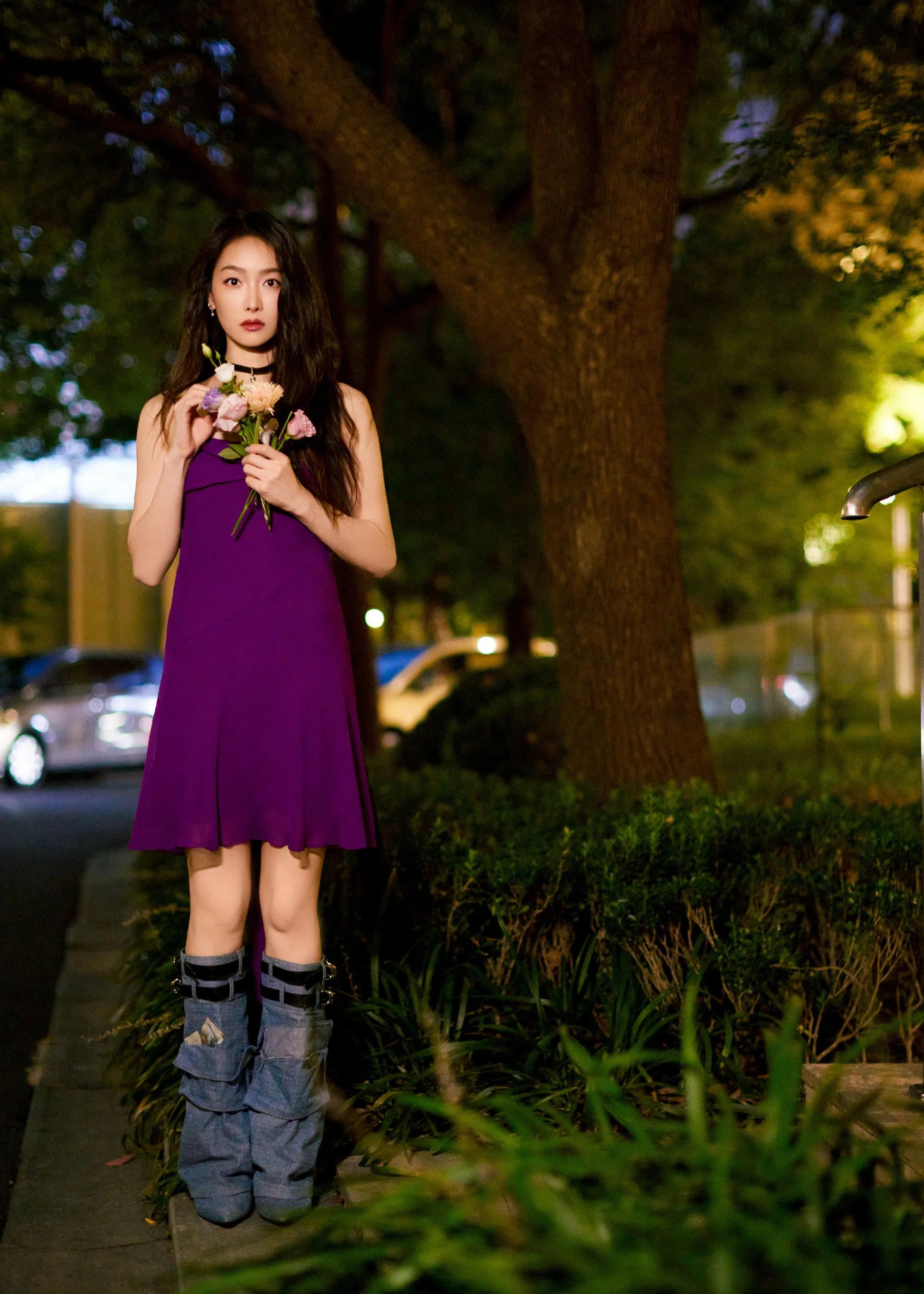 吴宣仪紫水晶花瓣纱裙,行走的春日精灵