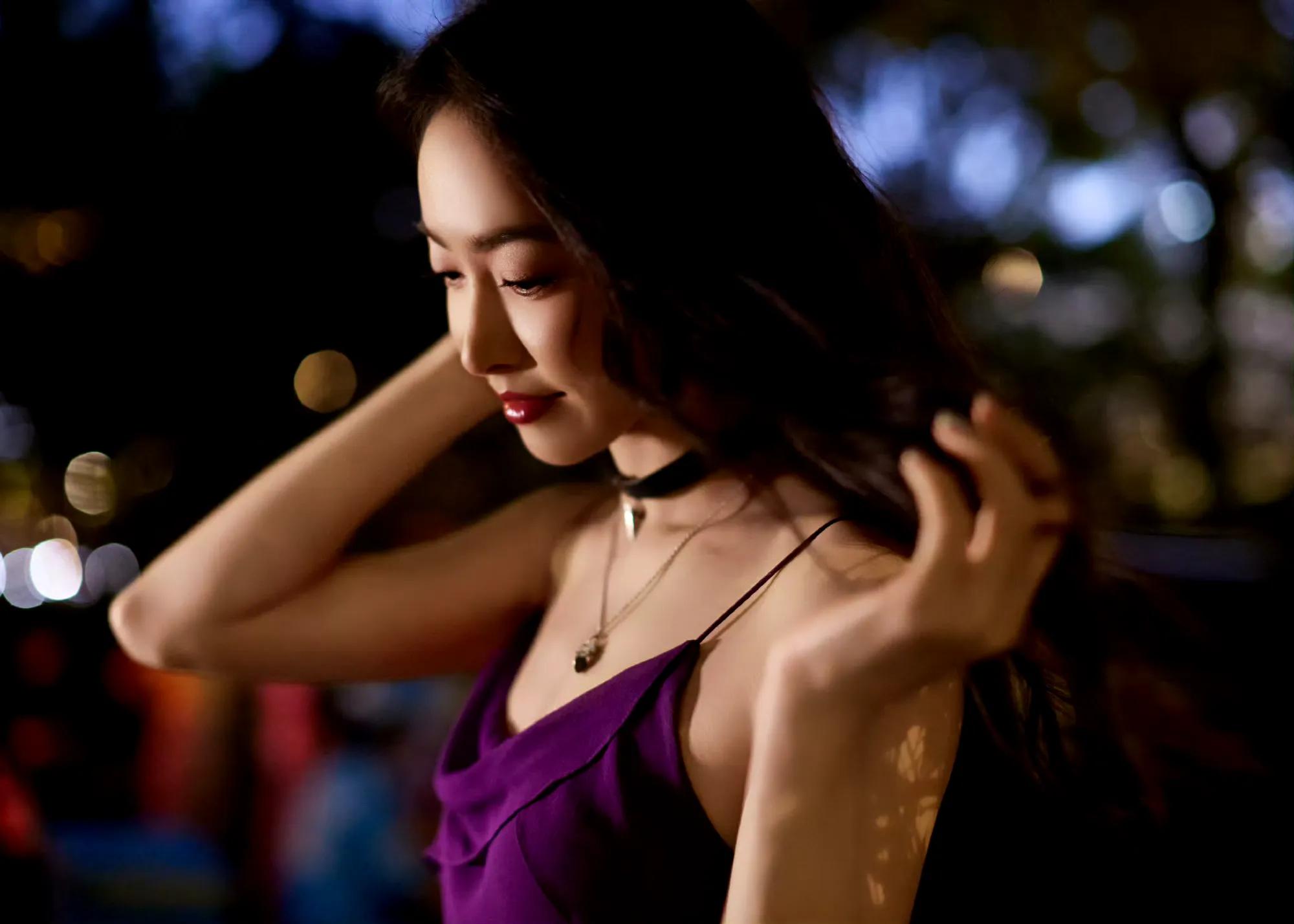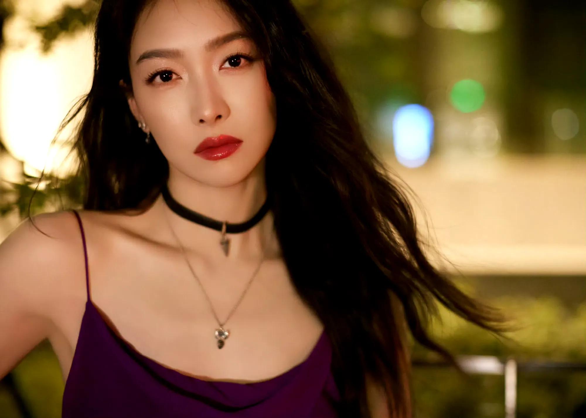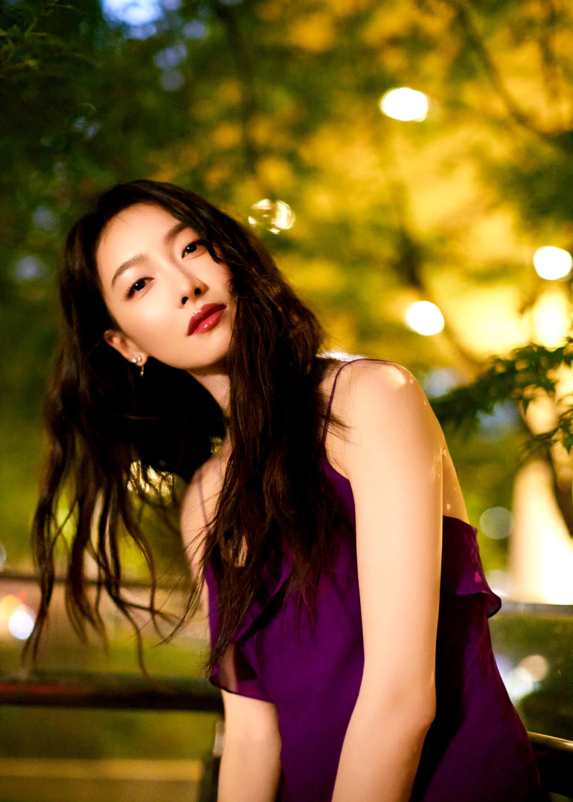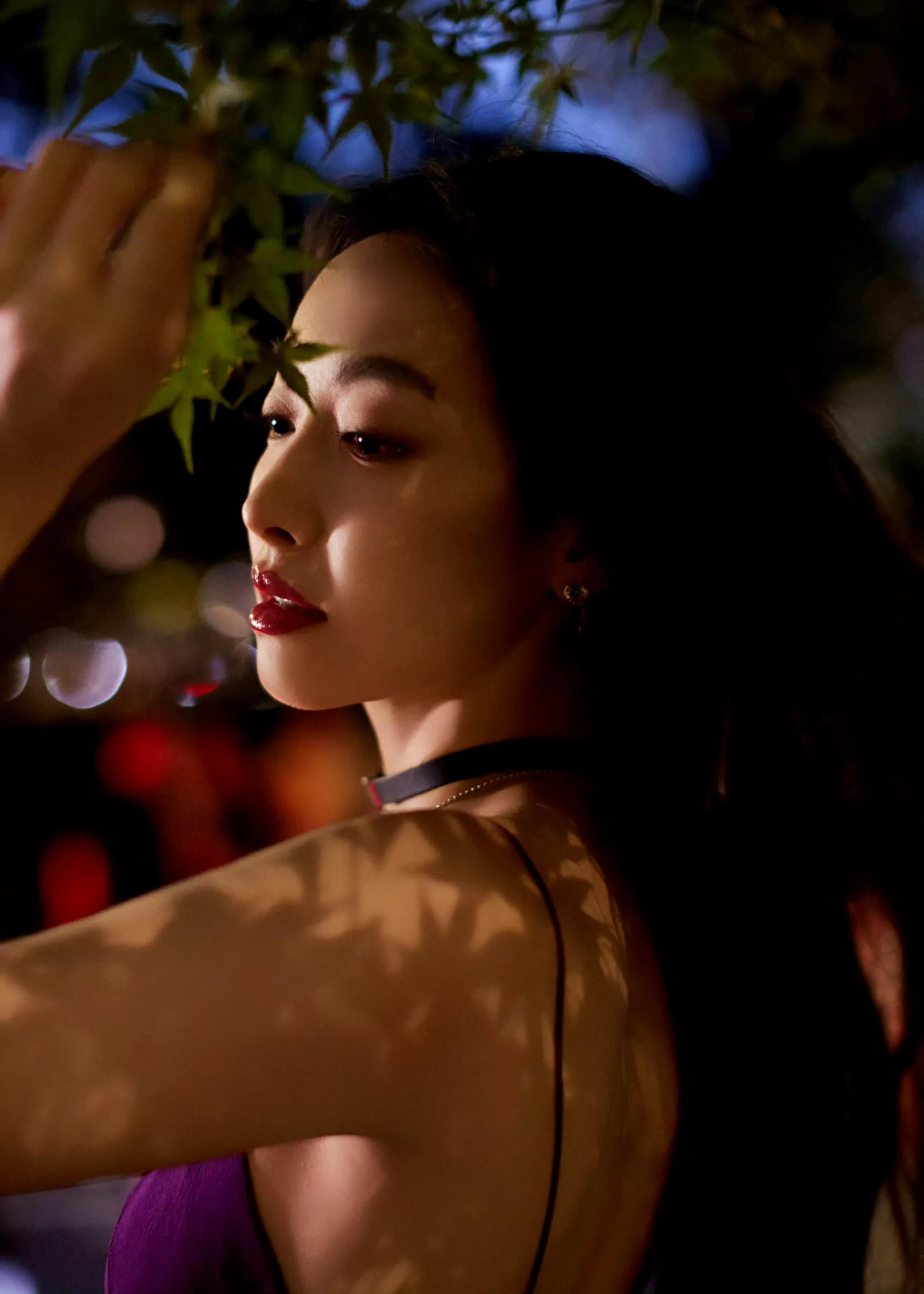 宋茜吊带抹胸连衣裙,紫色好有韵味
