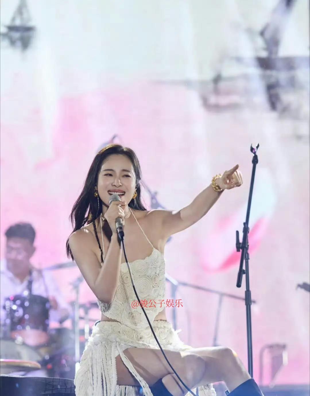 江一燕在社交平台上分享了一组舞台美照,身穿白色挂脖吊带衫的她完美展现出纤细的小蛮