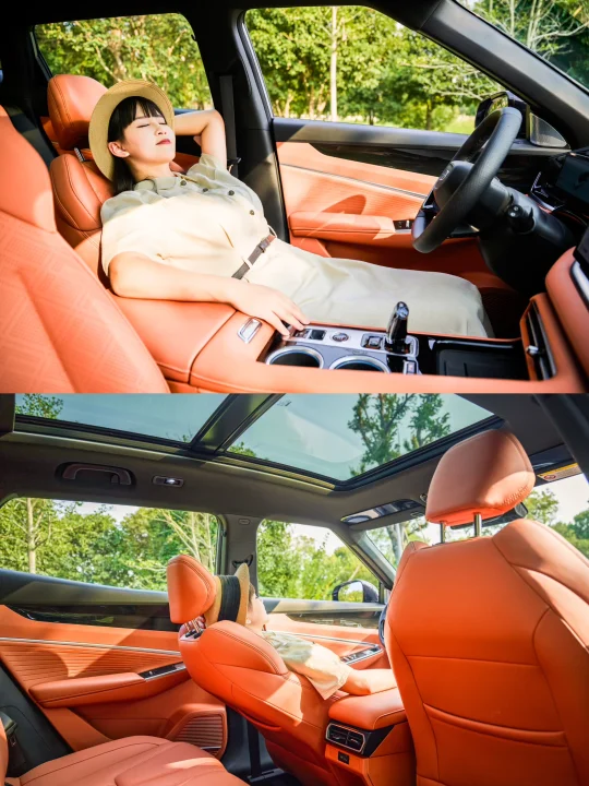 一上车👀我就被它同级最大85.4%得房率惊艳到了,像走进了一个舒适的小客厅。前后排乘坐空间也是同级最宽裕的,我还试了把后排放倒[斜眼R]秒变1.9米大床——随时躺平,随时休息,和在家放松根本没区别。