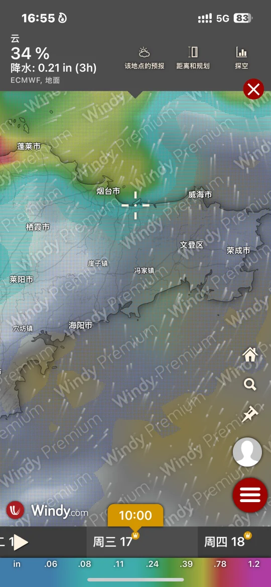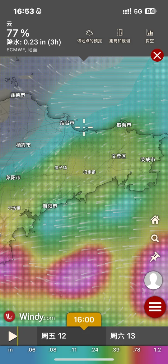 Hi.宝子们好,欢迎来烟台旅游观光!天气基本三天内准确度高!