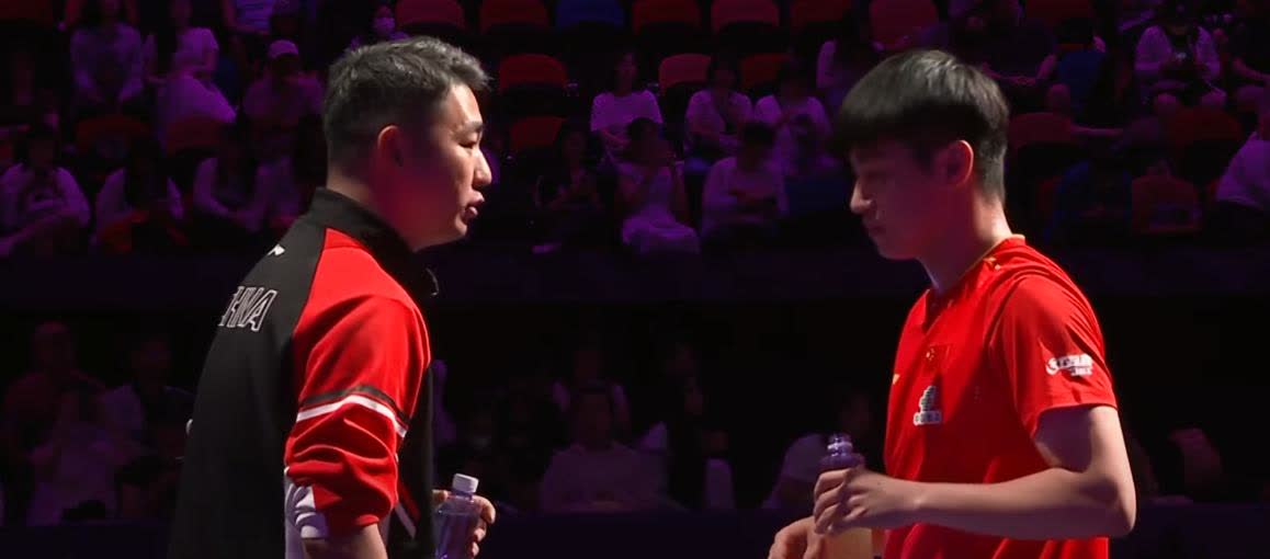 哈哈!牛!薛飞打别人不行, 一听是打张本智和, 来劲了! 今年新加坡大满贯, 薛飞替补小布, 3:1横扫了张本智和。 这次奥恰洛夫因伤退出, 薛飞替补, 怪不得 张本智和抗议, 薛飞是他克星。 第一局 薛飞逆转11:8拿下 第二局 薛飞9:8领先了, 叫了暂停! 薛飞果然会打张本,哈哈