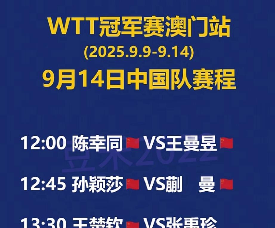 恭喜国乒女队, 提前包揽澳门冠军赛女单冠亚军。 半决赛孙颖莎对战蒯曼, 王曼昱对