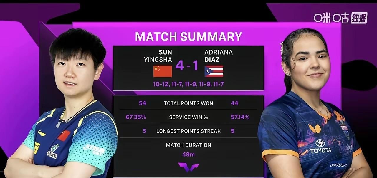 不出所料, 莎莎还是心软了, 4-1拿下好闺蜜迪亚兹, 给足了好友面子, 比赛结