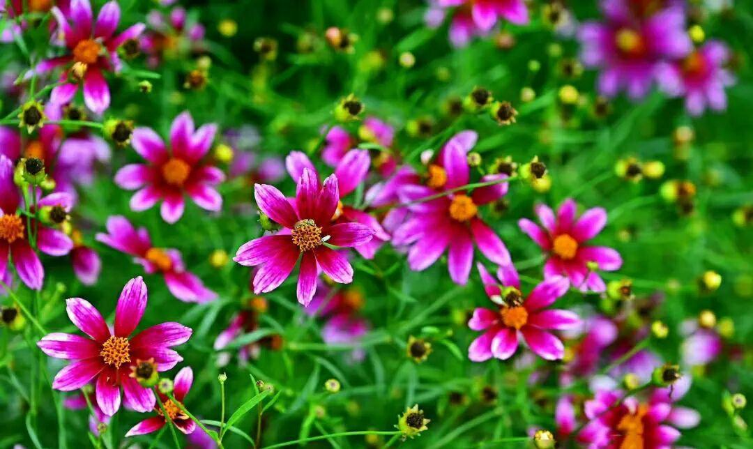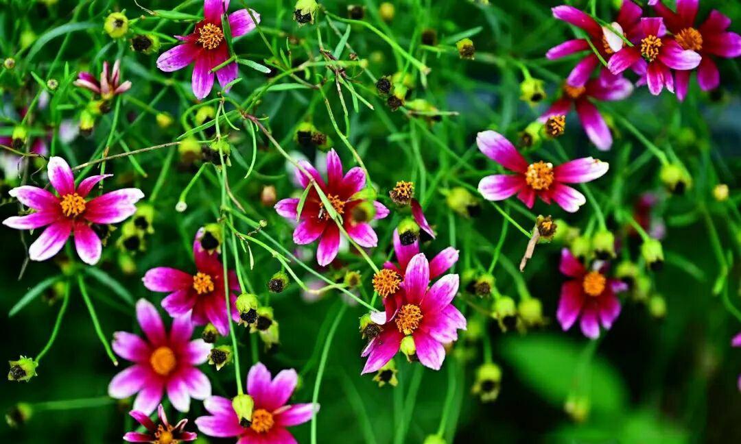 清新又浪漫的"天堂之门"金鸡菊 一场秋雨过后,小区小花园的一种小花开的生机盎然,