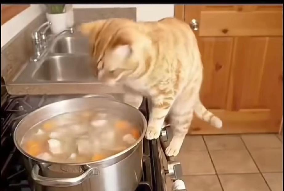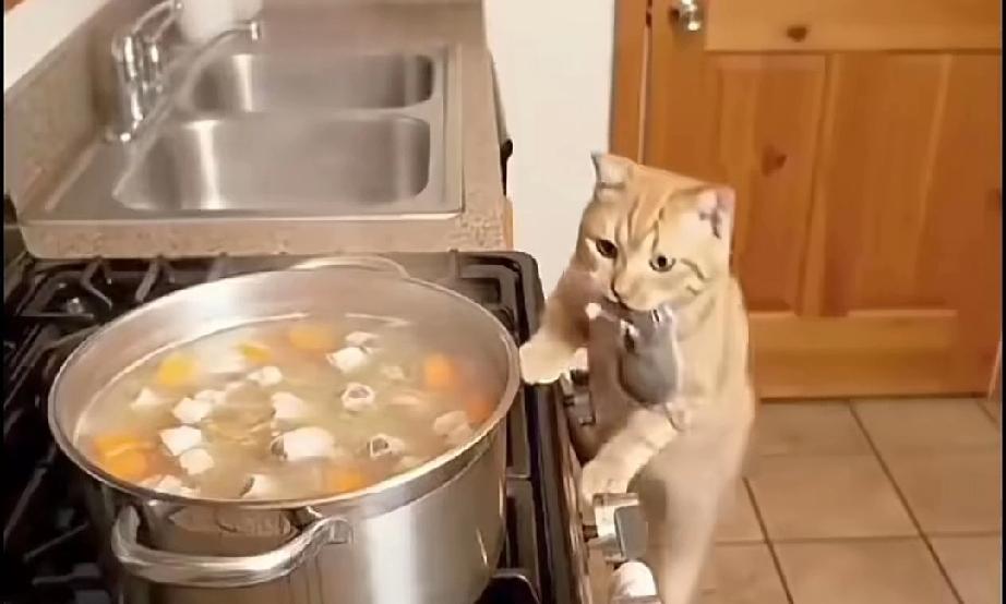 嗯,怎么又在炖肉?怎么老是猪肉啊?今天我给你添点“料”! 铲屎官正炖着猪肉呢,没想到家里养的橘花猫闻到香味,竟去逮了只肥硕的老鼠回来。它快速跑到锅前,把老鼠偷偷的丢进了锅里。 这一幕刚好被家里的监控拍了下来,也不知道铲屎官发现后会不会生气,并把橘花猫暴揍一顿呢? 有网友说,有这么可爱的猫咪,把自己逮到的美味肥鼠送给主人吃,哪舍得打它呀?要是自己家里有这么一只聪明可爱的橘花猫,一定得奖励它好多根猫条。 友友们,面对这样可爱又调皮的猫咪,要是它也叼只老鼠扔进了你的肉锅里,你会打它吗?那锅美味的肉肉你还敢吃吗?