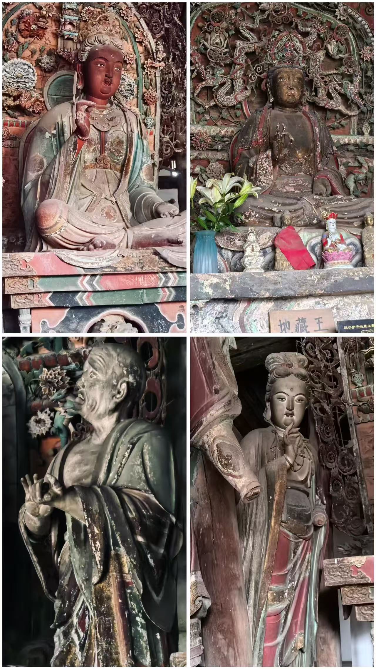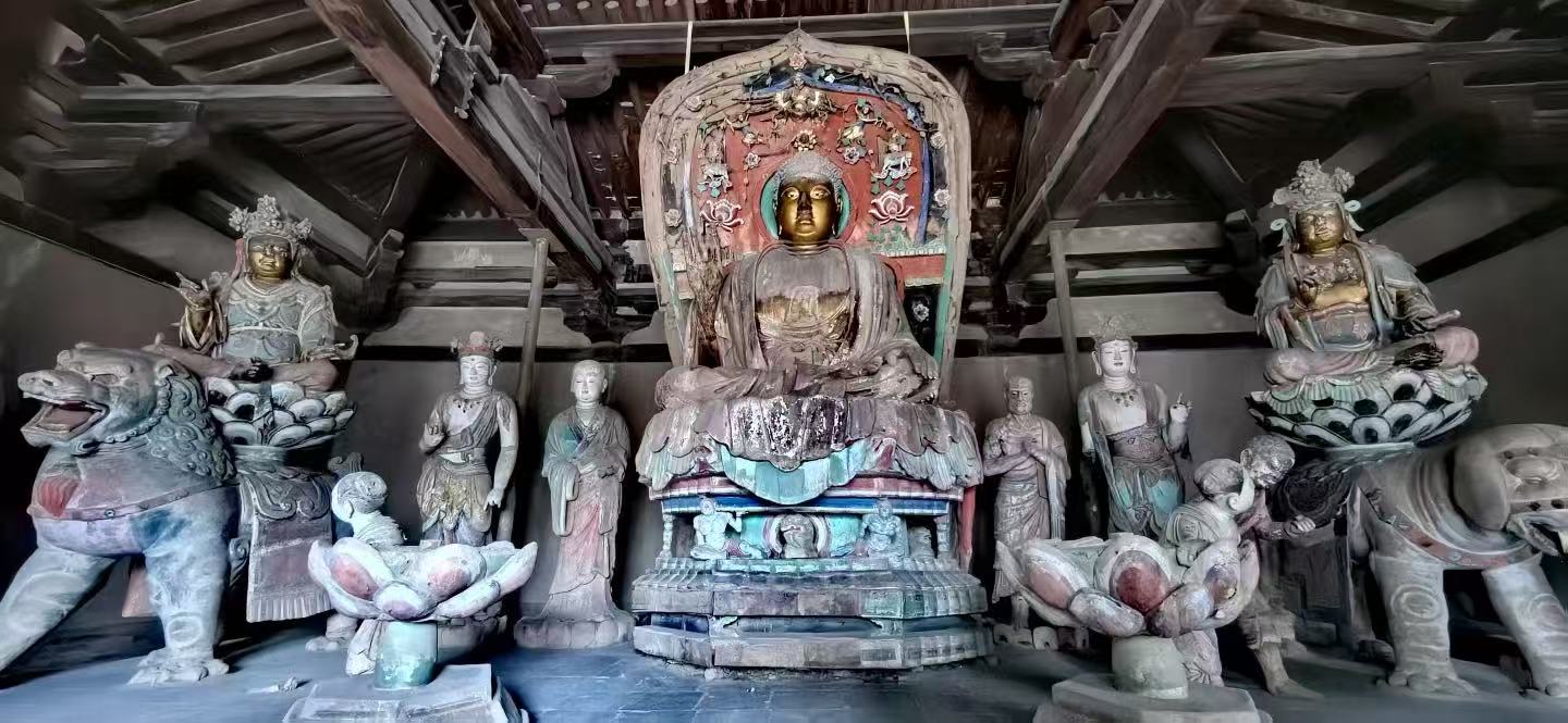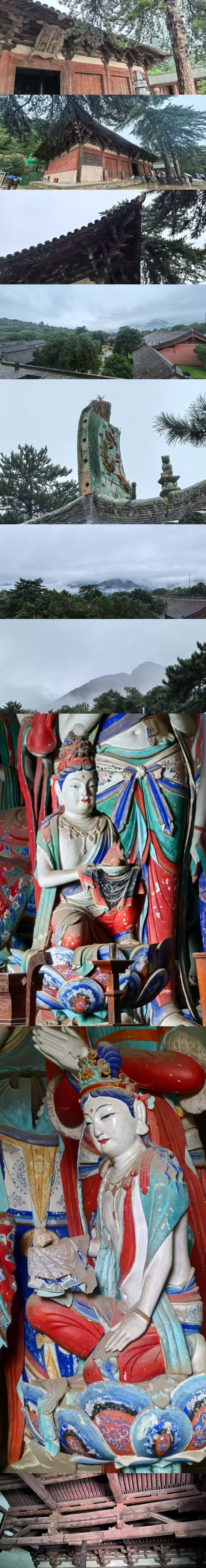 🗺️路线:宋代洪福寺-唐代南禅寺-金代延庆寺-唐代佛光寺-元代广济寺 ✅洪福寺:有唯一的红脸文殊菩萨和女相地藏王菩萨,真的是东方美学极致。 ✅南禅寺:塑像保留了唐代原本的颜色,手机真的拍不出肉眼的美。南禅寺多次被洗劫,前方莲台的供养人和牵狮的于阗国王被抢走,碎的碎消失的消失,有种莫名的失落。 ✅黑神话同款的延庆寺:正方形大殿,侧面看颇有一种西游记动画的错觉,感觉下一秒这个房子就要扭曲起来开始说话了! ✅佛光寺:文殊殿的木制框架和减柱法令人惊叹,东大殿更是让人失语。爬上几乎垂直地面的37级台阶,站到它面前的时候,不禁说了一句“这太美了”!唐风扑面而来……不愧为中国古建第一国宝。 ✅广济寺:唯一现存的唐代经幢也在默默守护着这里。也是很多人必打卡的景点。 喜欢唐风美学的朋友,可以来细细打卡五座寺院的千年之美。