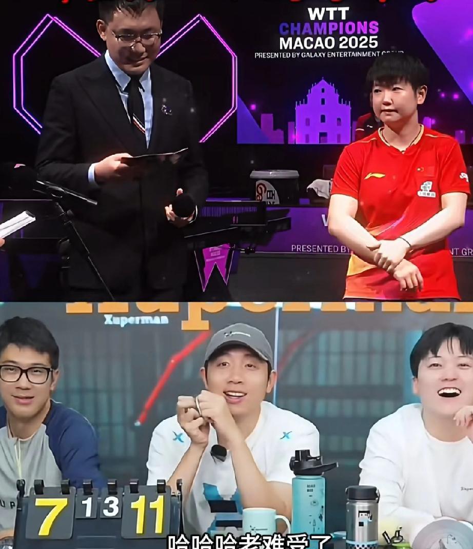 许昕又蛐蛐莎莎采访了 许昕非常关注莎莎,不仅关注她的比赛,就连赛后采访也非常感兴