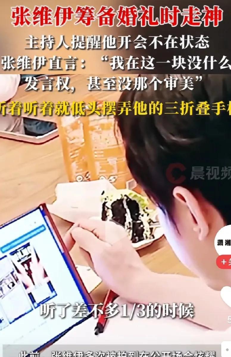 张维伊筹备婚礼时走神摆弄折叠手机 即日,在综艺《姐姐当家》中,张维伊与董璇筹备婚礼时多次走神,低头摆弄三折叠手机,直言对婚礼细节“没发言权、没审美”。此前他付款卡壳、公开场合炫手机已引发争议,此次分心行为更被网友质疑“逃避责任”,婚姻态度再遭热议。