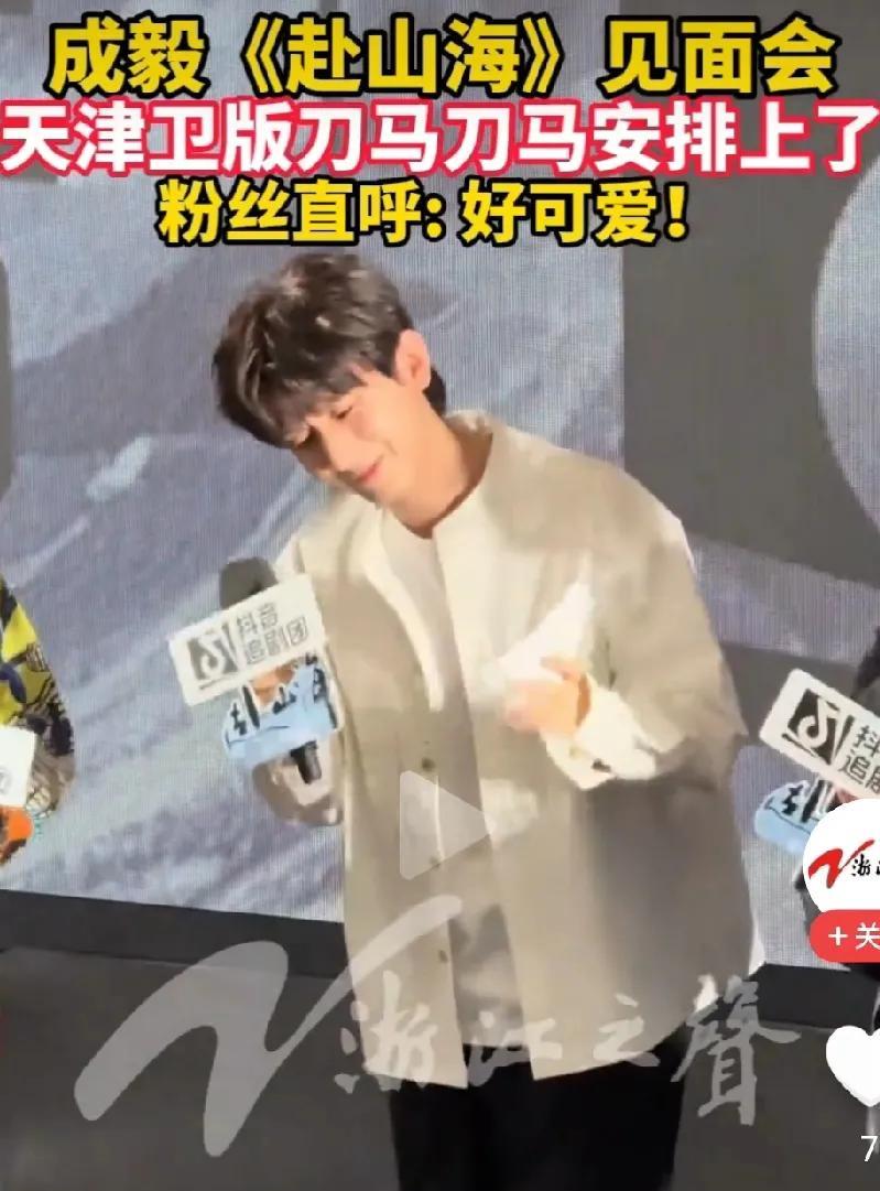 成毅跳天津卫版刀马刀马 即日,演员成毅在《赴山海》见面会上跳起天津卫版“刀马刀马”舞,还融入天津方言rap,从害羞到“摆烂”的可爱表现引发全场欢笑。现场视频迅速登上热搜,网友直呼“成毅的天津味唱跳太有梗”,戏称其为“被演戏耽误的喜剧人”。