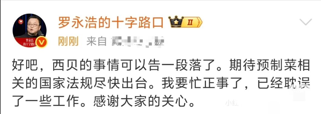 停战了!罗永浩刚刚宣布:西贝的事告一段落。
