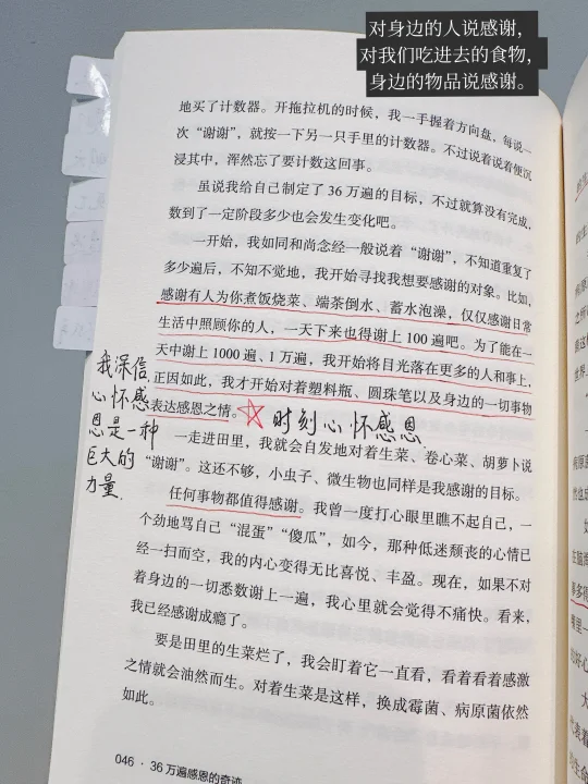 对身边的人说感谢,对我们吃进去的食物,身边的物品说感谢。