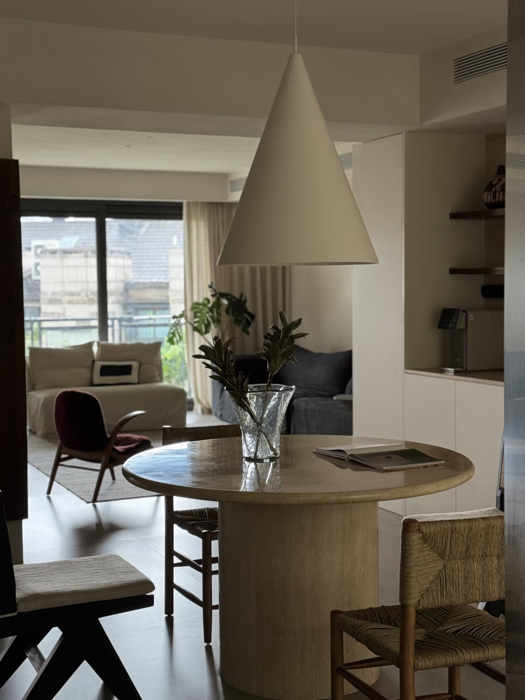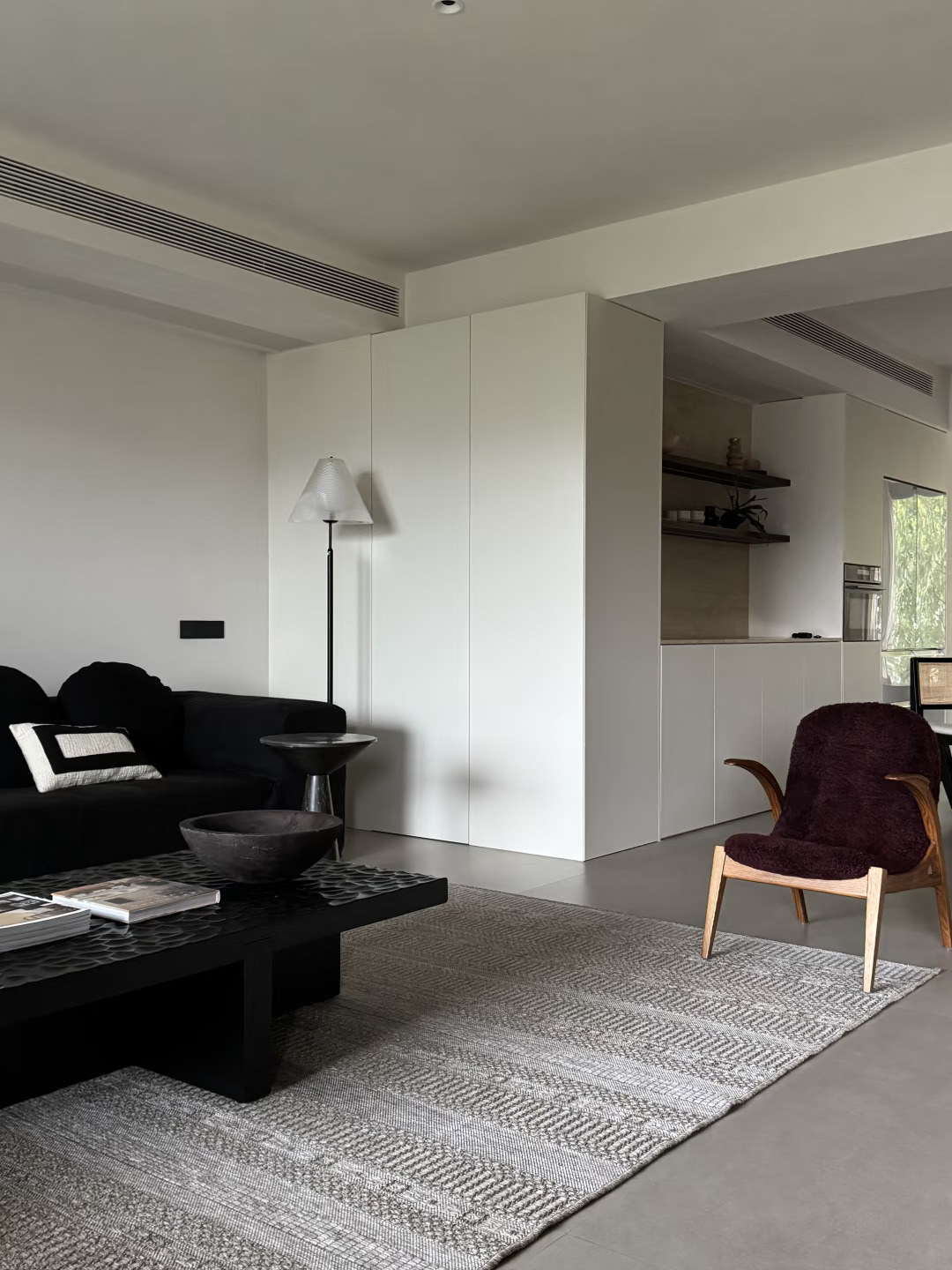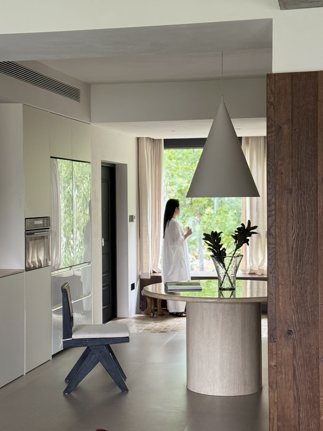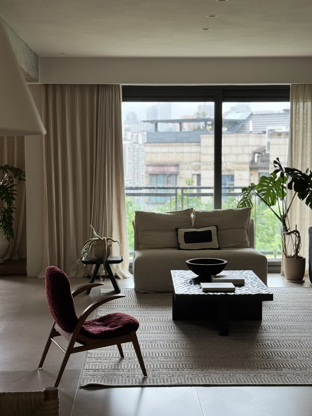我非常喜欢把硬装部分尽量简化,利用材质去提升质感。结合功能去造一些必要的型,把家的包容度尽量扩宽。这次选择在业主入住后去拍照,是想要有一些生活感在家里,拍摄都没有怎么收拾,也是感叹念姐把家维持的好好。