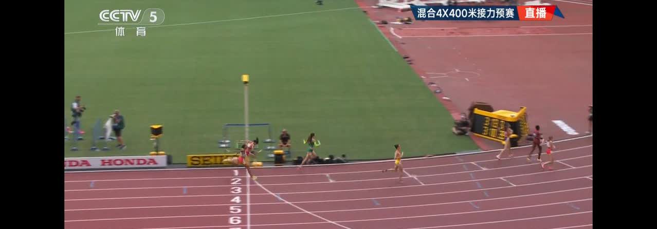 世锦赛混合4X400米接力预赛,中国队以3分13秒96力压法国队,避免小组垫底。