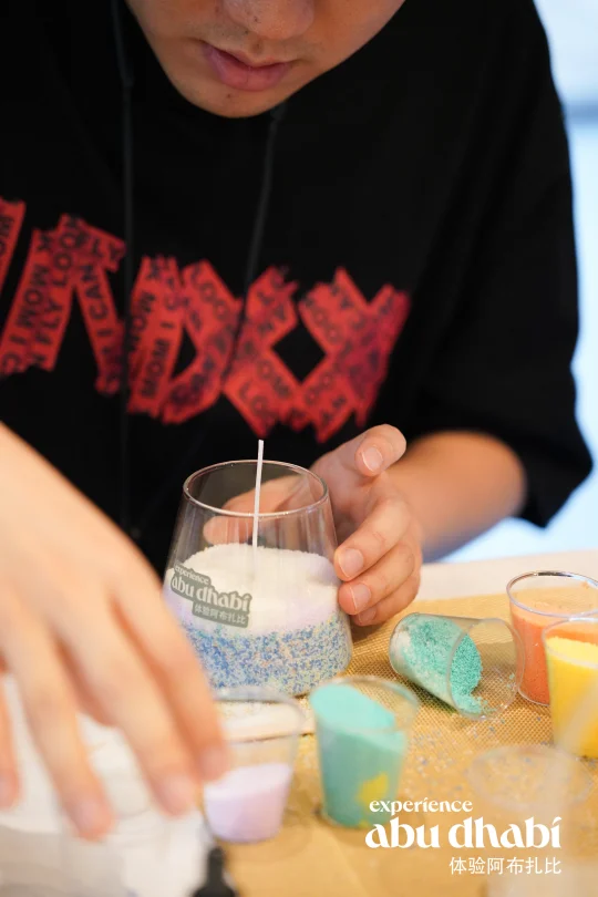 兴趣友好计划 承接了一场特别有氛围感的手工团建 袋子上面的蝴蝶结也是一个个打上去的 现场高级感拉满!用沙作画,以光封存