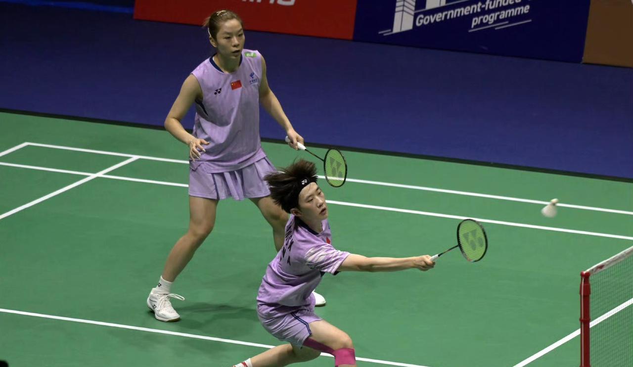 比赛正在进行中, 这是2025年中国香港羽毛球公开赛女双决赛。 今天张殊贤的状态