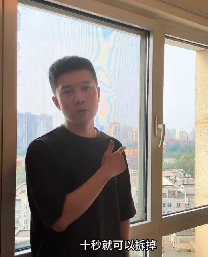 于朦胧事发小区,同栋住户遛狗者首度发声! 他就是第一个在小区发现于朦胧坠楼的业主,当时的遛狗者!在9月14号,他终于顶不住压力出来回应,还拍了一个视频还原现场。 他跟于朦胧所坠楼的单位是同一栋,所以拍视频用的是他家的窗。整个视频里他用了十秒都不到就拆下了纱窗的两条固定白边,速度非常快!据他所说,这是开发商装修的时候统一装的,家家户户都一样,质量也是肉眼可见的差,难怪拆纱窗都弄大动静。 这位业主称他相信通告,亲自示范后,发现拆纱窗不需要工具,有手就行,只需要轻轻一扒拉就能拆除,虽然窗口不是很大,到腰的位置,但人如果真的站在这上面,掉下去也是有可能,这是他自个的认为。到目前为止就看到了于朦胧工作室发的一个通告,再也没有看到其它的,而这位业主是小区里第一个发现于朦胧坠楼报警的,也是多次在小区里碰见过于朦胧去小区找朋友玩的业主,这是什么缘啊!希望于朦胧在另一个世界安好,还是依然为他的离开而难过。