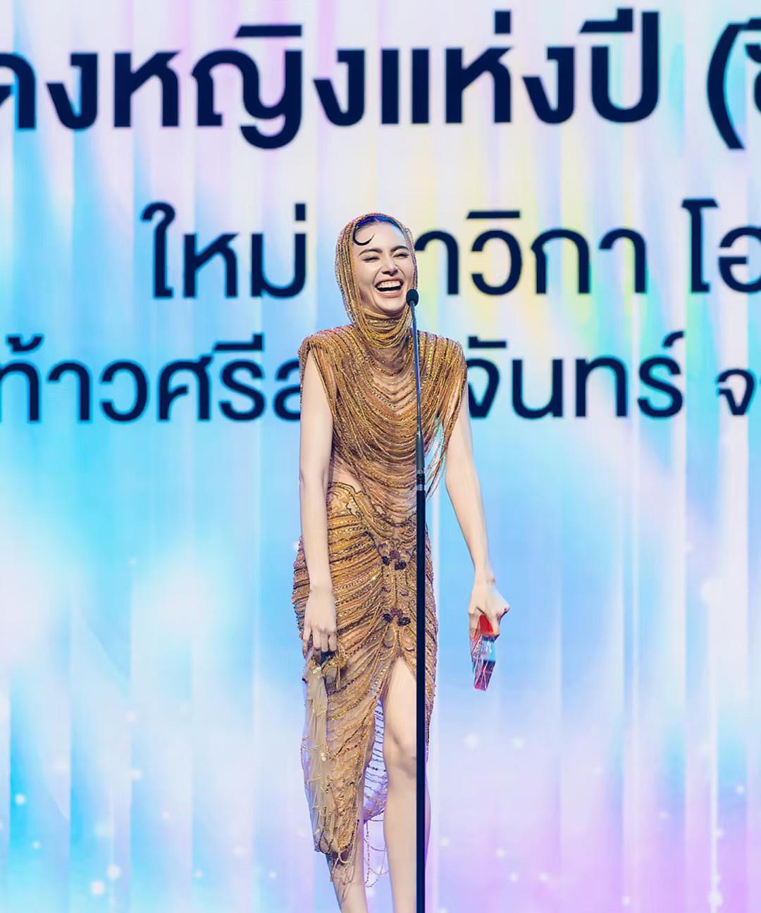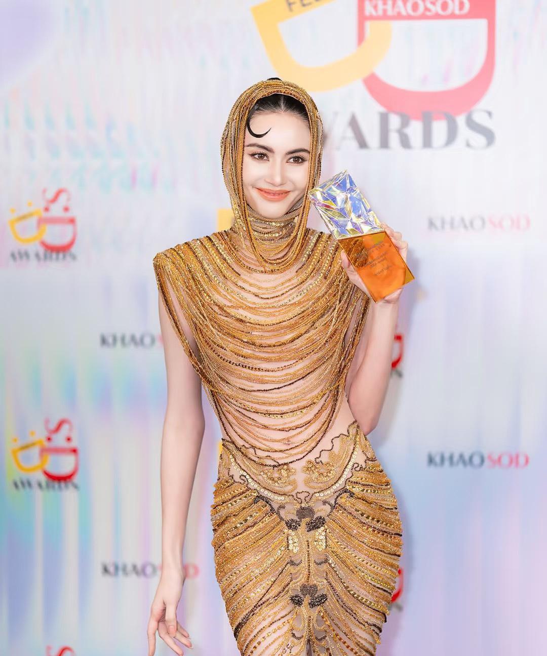 Mai 最新出席曼谷颁奖典礼,她荣获年度最佳电视剧女演员奖,笑的好开心~ 埃及艳后造型很吸晴!