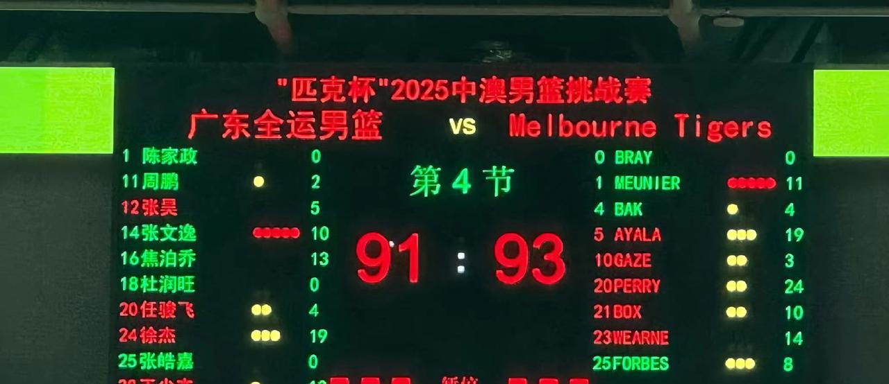 广东宏远前锋张昊最后传球杀死了比赛!王少杰,祖传的两罚一中,广东全运男篮2分输给墨尔本老虎,两场热身赛,一场没拿下,恕我直言,我不怀疑焦泊乔的能力,只是他的伤病不断埋有隐患,捏把汗,广东男篮91比93惜败澳大利亚墨尔本老虎队!徐杰19分,贺希宁拿到全队最高的25分依然输球。广东全运男篮家门口作战,招兵买马想冲击金牌,我认为金牌在辽宁和北京男篮决出,原因很简单,墨尔本老虎14分输给辽宁二队