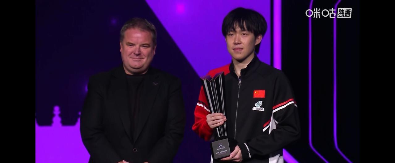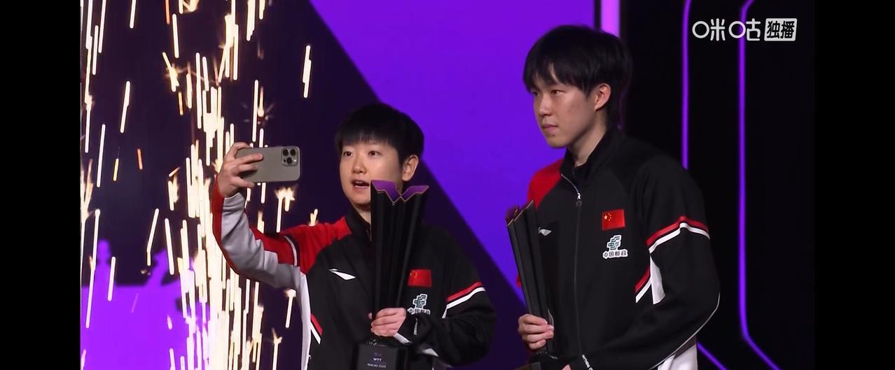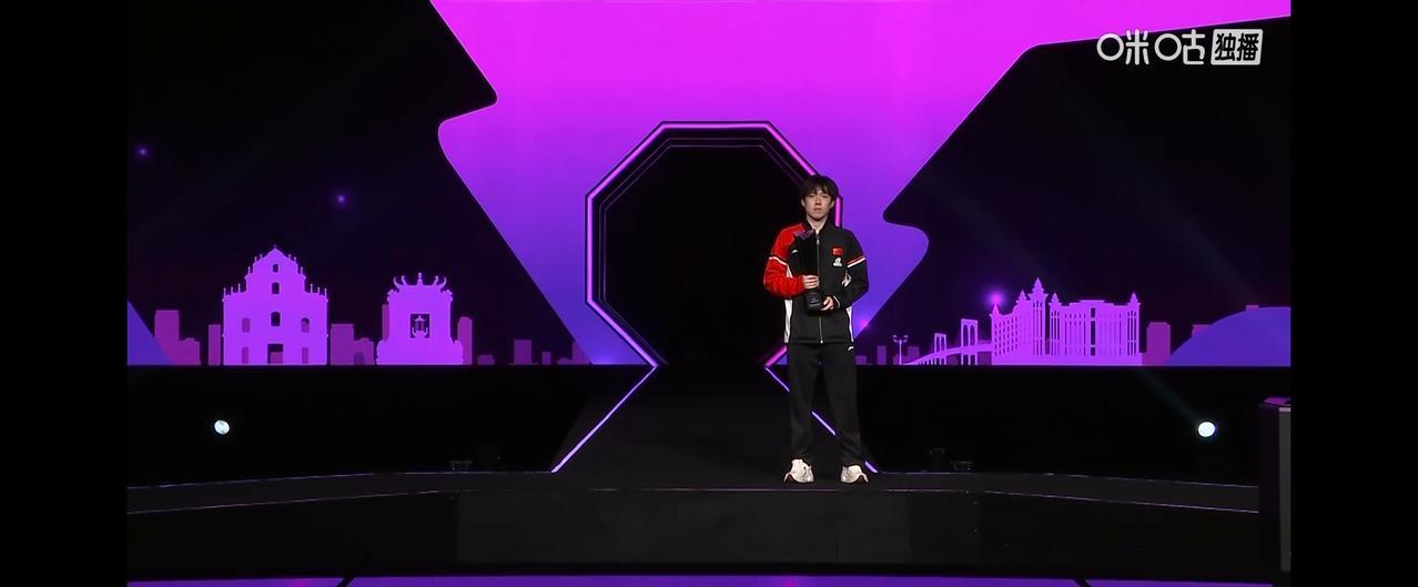 澳门冠军赛男单颁奖仪式。 冠军,中国队王楚钦,亚军,巴西队雨果。 与女单冠军合照环节,头哥自动向舞台边上挪了挪,给莎莎留出来中间c位。 幸福吧,开心吧,所有的莎 头 粉们。 #秋日生活打卡季#