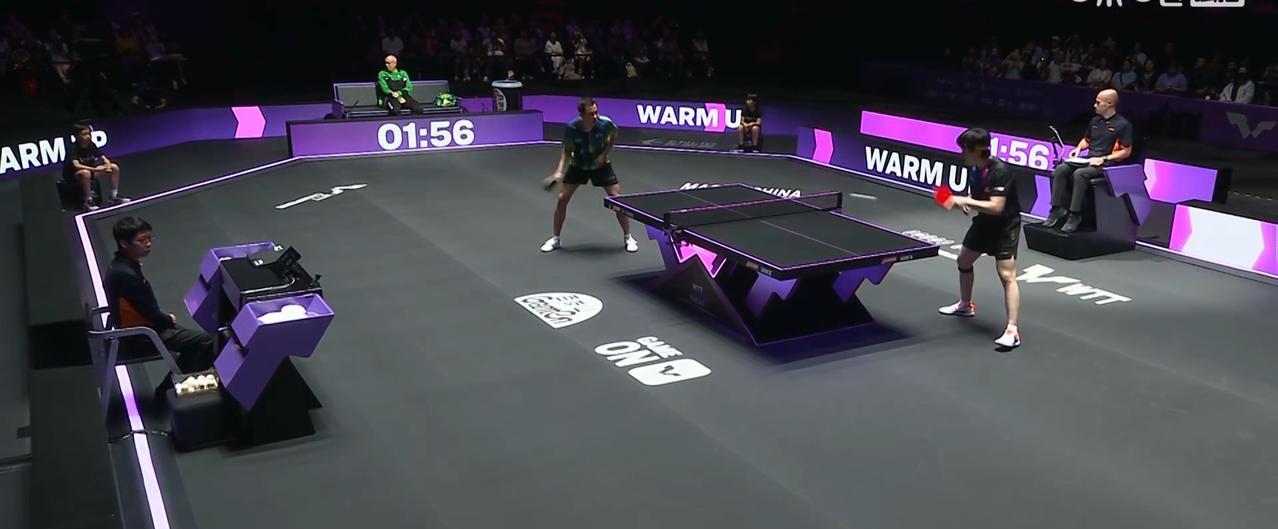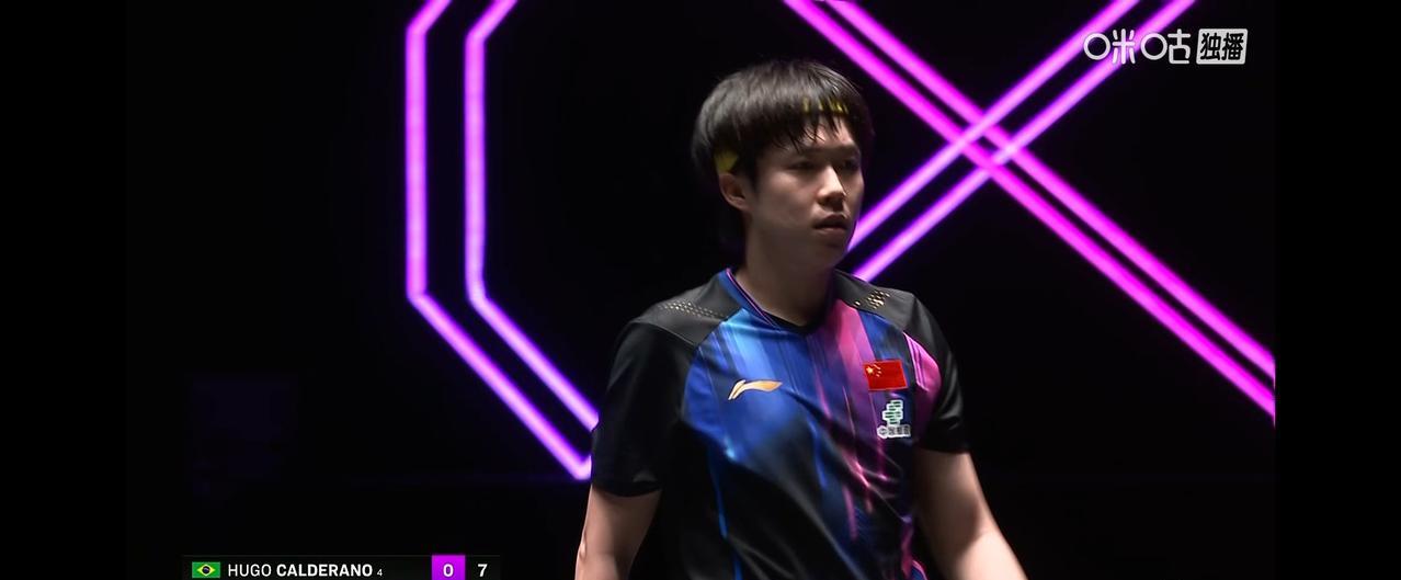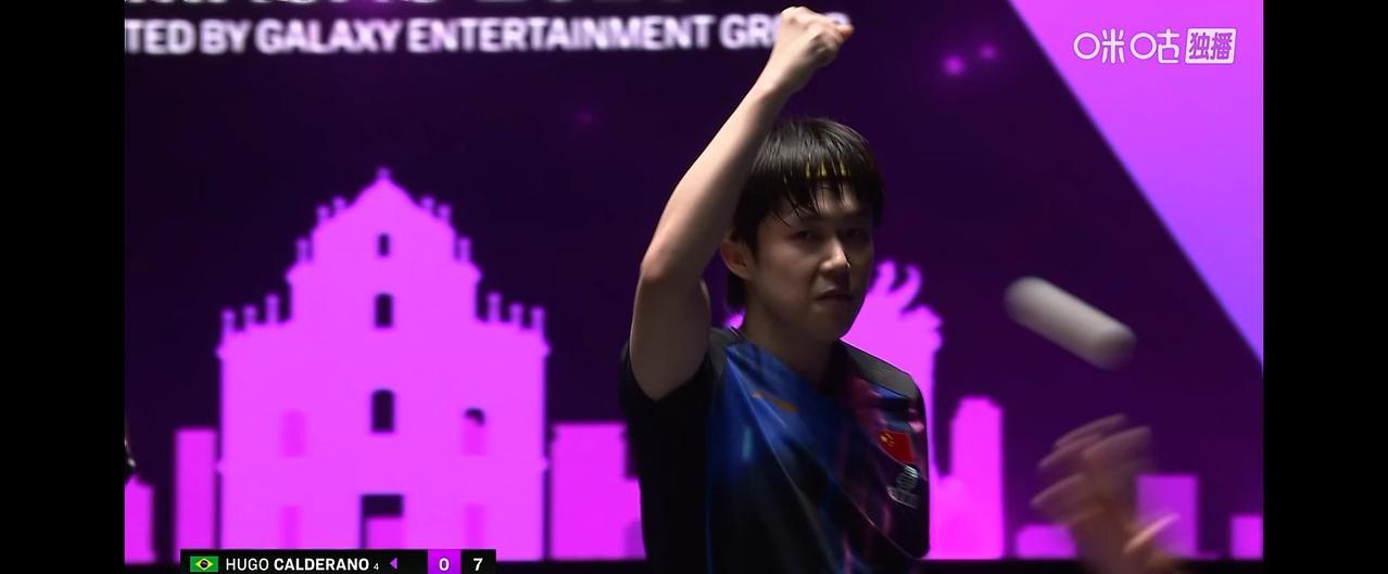 雨果居然也会背后击球。 今天雨果跟大头决赛,雨果看来很放松啊。 第三局,雨果居然