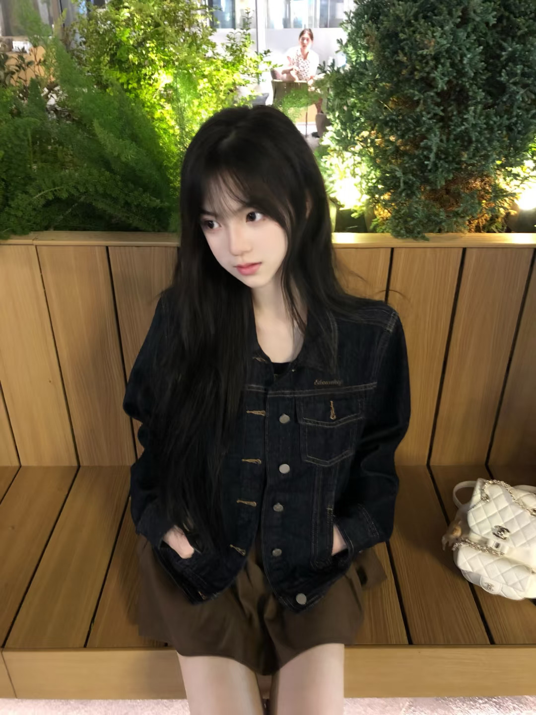 姐姐在溪边美得像幅自然画卷!黑色紧身衣勾勒出曼妙曲线,米色裤装衬得身姿挺拔,低丸