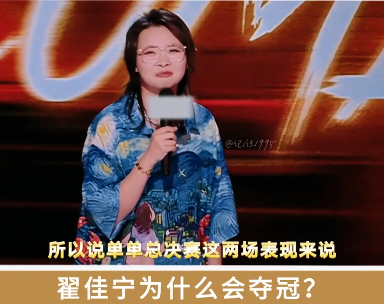 因为其他人都越讲越沉重了,只有翟佳宁在纯粹的逗乐观众,他不夺冠谁夺冠呢。