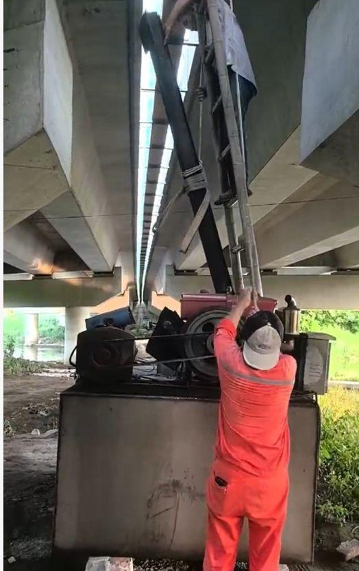 村民怕拖拉机淋雨将车头挂高速桥下 近日,江苏省交通综合执法局宁通支队第六大队执法人员在进行道路巡查时,发现启扬高速一处桥梁下方悬挂一架拖拉机头。经走访,执法人员得知车头属村民戴某。近期连续降雨,戴某担心拖拉机在低洼处被泡坏,便自行用粗杆和绳子将车头悬空挂在桥下,未意识到此举对桥梁安全和道路通行的危害。经过执法人员的耐心宣传和安全警示教育,戴某取下车头转移至安全处并清理桥下秸秆等杂物。(记者 成沫 剪辑 庆苗苗)
