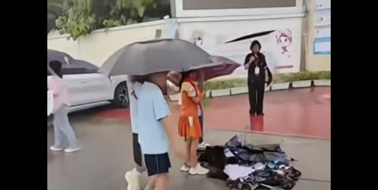 这些传播假新闻才是真的可恶,数学校不给带雨伞。视频看着好像是真的,无数家长都误会