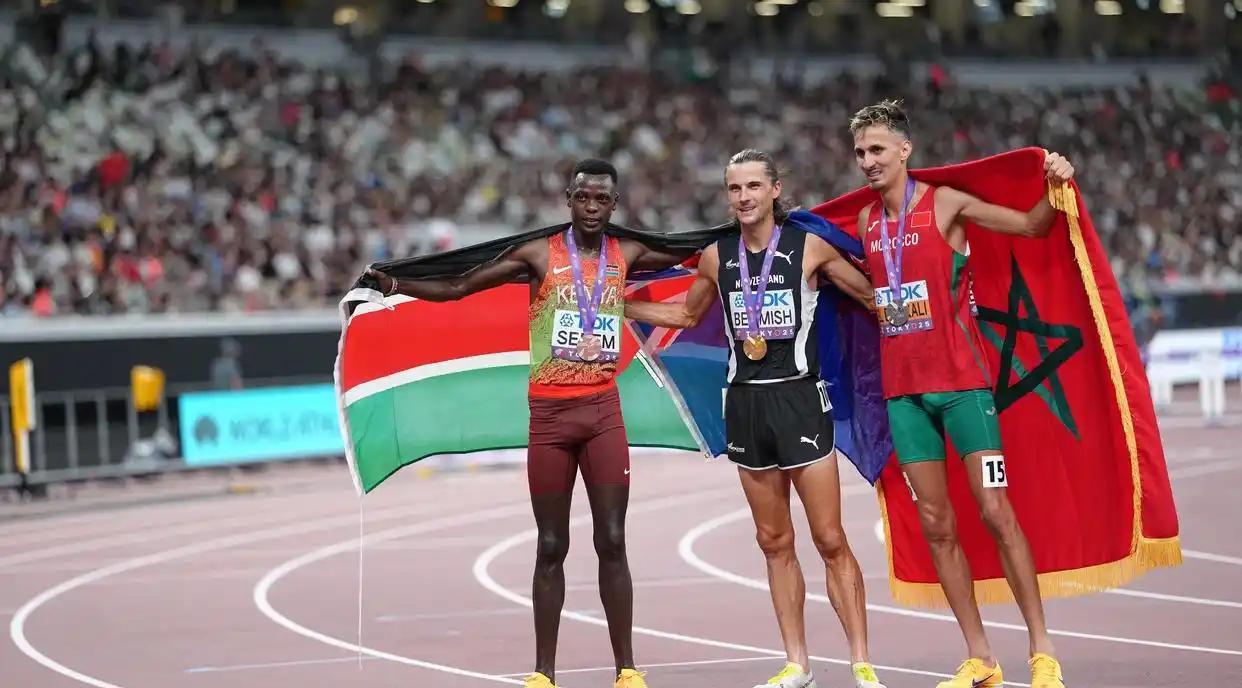 煮熟的鸭子飞了,东京田径世锦赛男子3000米障碍决赛,摩洛哥的埃尔巴卡利冲过终点