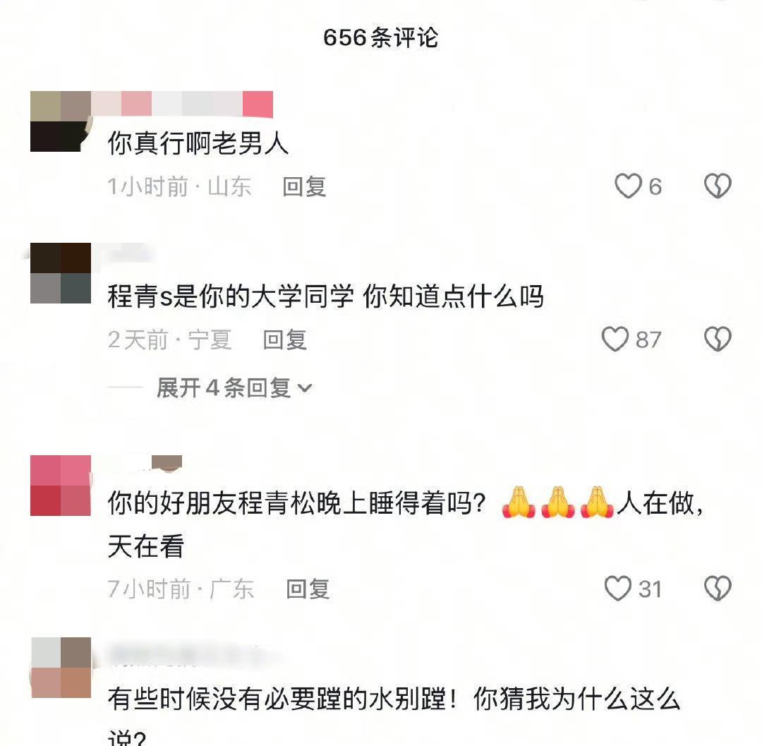 黄晓明这次太冤了! 就因为是程青松大学同学, 他的评论区直接被网友冲了。 程青松