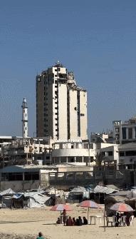 据媒体报道,以色列空军今天炸毁了巴勒斯坦加沙市现存的最高楼“加夫里塔”。 找不到