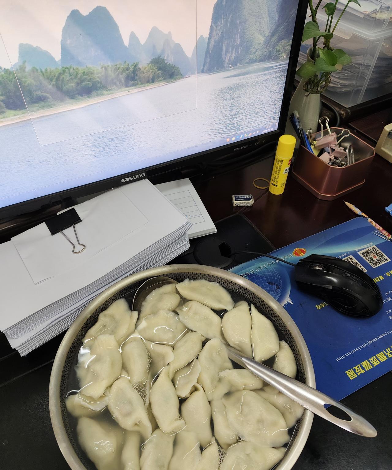 悄悄地告诉你们,今天早上,我又一个人在财务室包水饺了。 这次绝对上了一个档次,没再用筷子擀饺子皮了。现在用的是自己做的香椿木擀面杖。是不是很上档次? 有需要的,我可以免费帮你们做个哈。 一边听着摇滚音乐,一边包饺子,听到开心处,随着音乐摇头晃脑。那种场景,那种惬意感,估计没几个人有这种感受了吧? 写到此处,自己都忍不住笑出声来。我觉得这就是记录生活的意义所在吧?