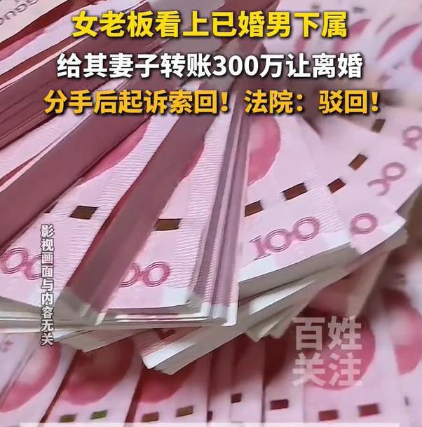 “给你300万,请你离开你的老公”。重庆,一位女老板看上自己的男下属,豪气的一掷