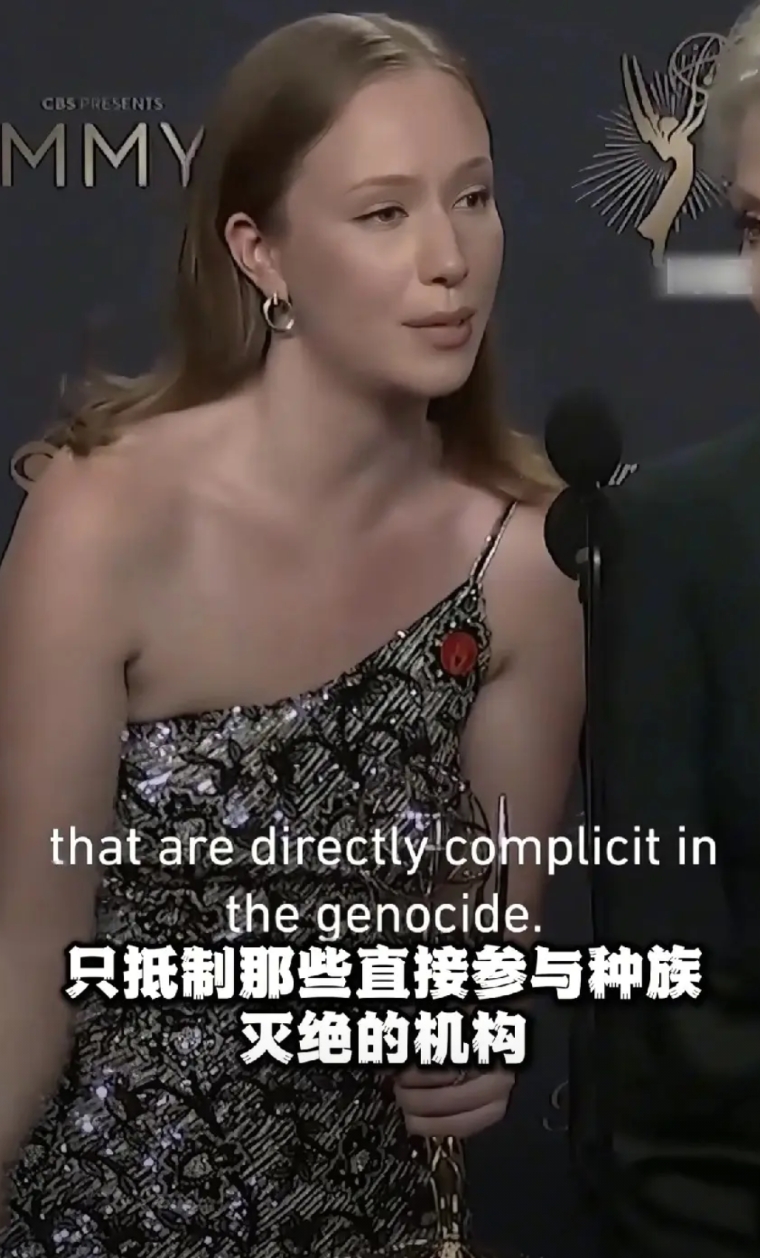 不是因为她长的有多漂亮,也不是她戏演的多好,而是因为她太勇敢了!她在发表获奖感言时,居然敢大胆的为解放巴勒斯坦发声,对美爆粗“F**K ICE”。