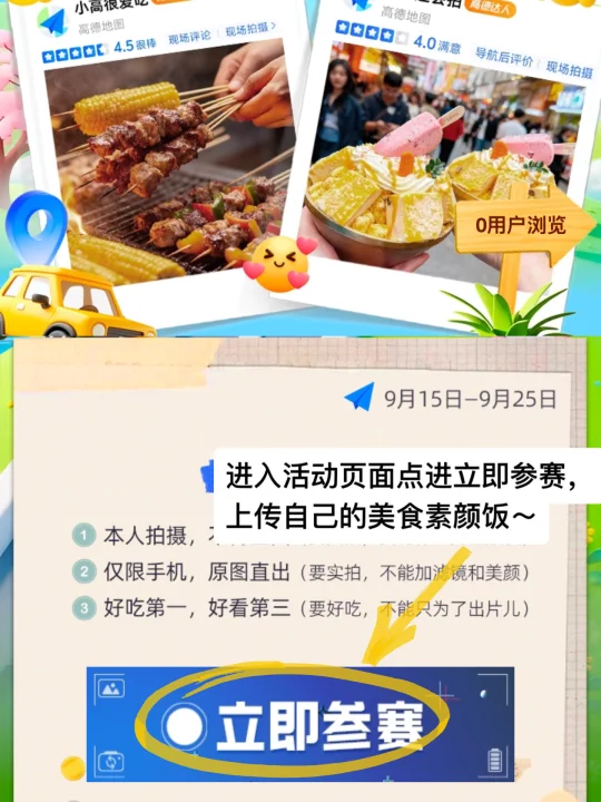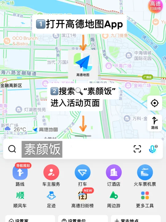 1,高德地图搜【素颜饭】,点进活动就能参赛,