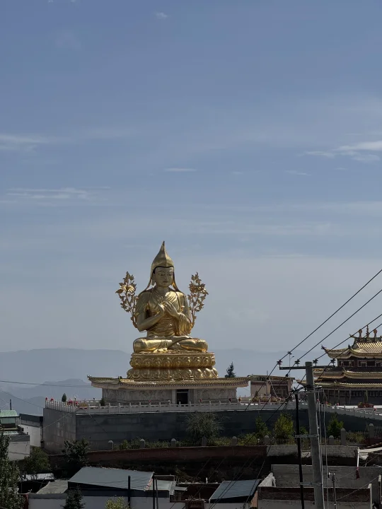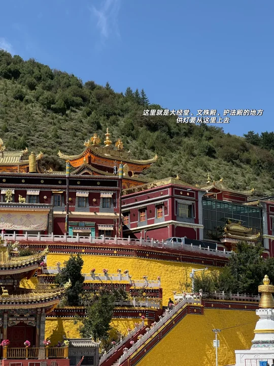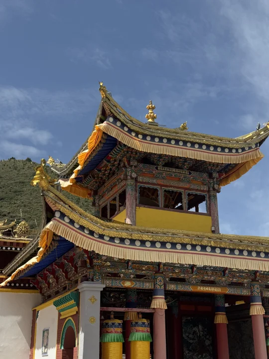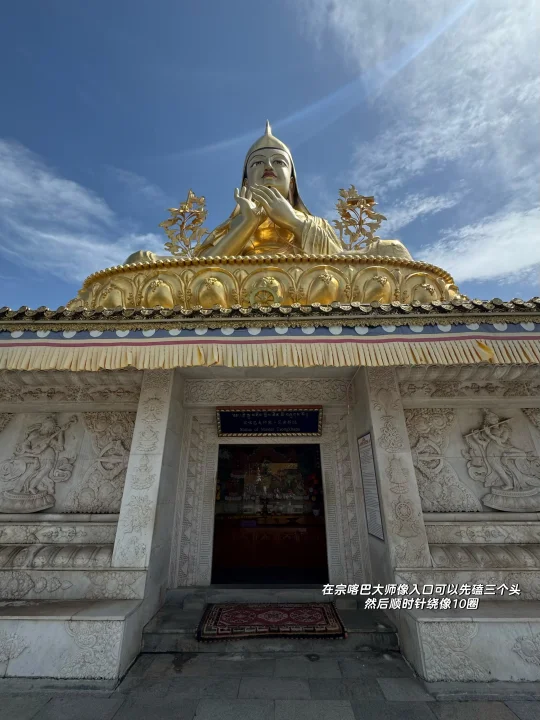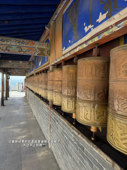 🪷快到夏琼寺时,由于修路车进不去(里面有停车场),我们就停在路边步行到宗喀巴大师像殿。🚶➡️进去之前要在外面绕像至少三圈,如果有时间就转10圈,殿里飘着酥油香,心诚就有回应。☀️旁边转经轮虽在维修少了一面,我们还是挨个转了。里面是金刚亥母殿,一说这里是求子的,也不让拍照就在门口表达了敬意hhh