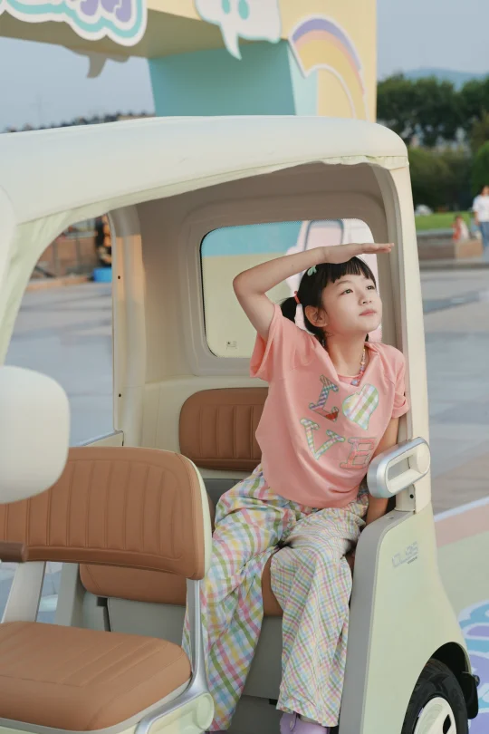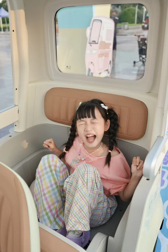 双层顶篷夏天防晒、雨天挡雨,娃坐在后排再也不用裹得像粽子,内饰也质感满满,比挤在汽车里舒服多了!