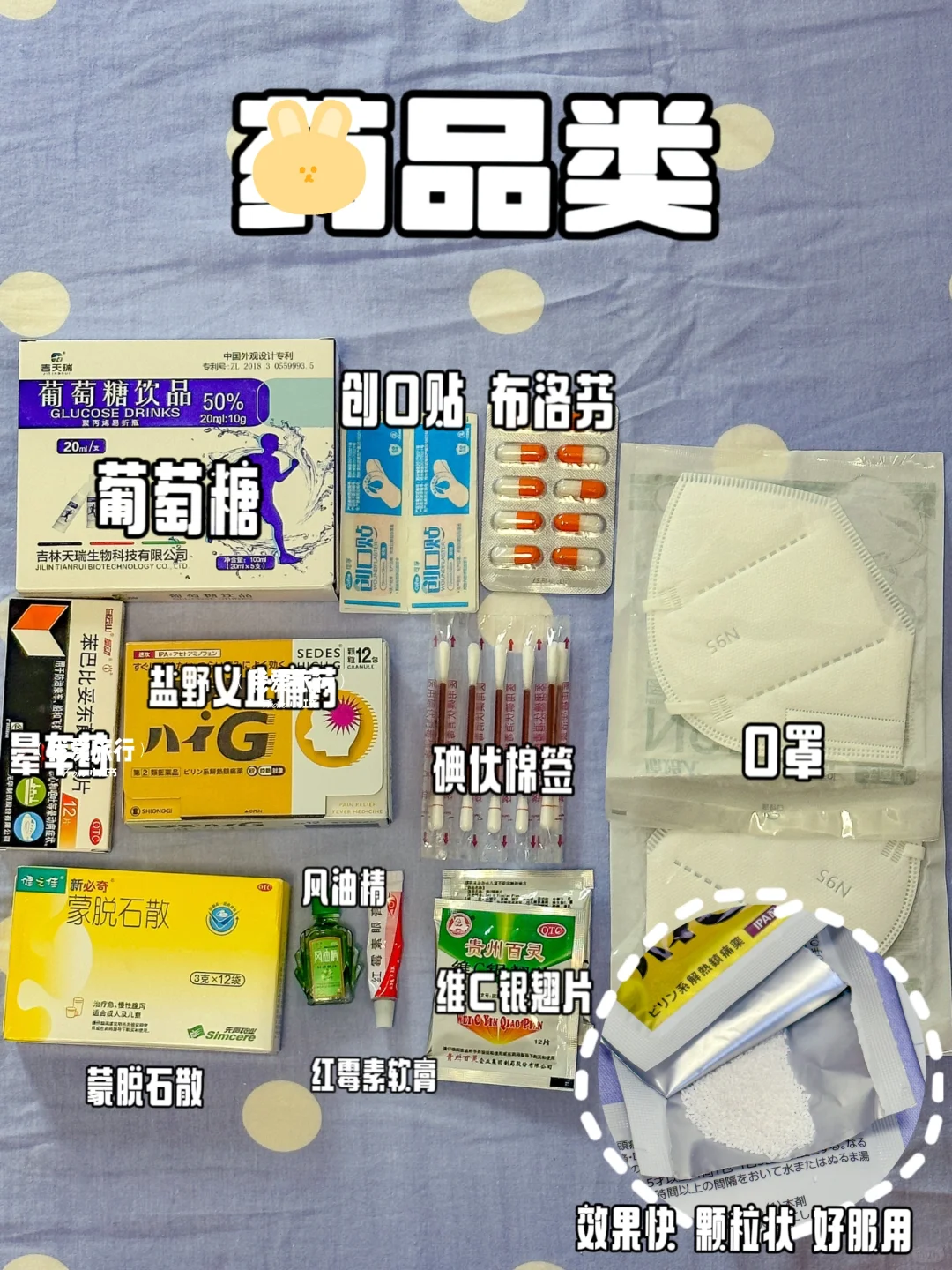 氧气瓶,感冒💊,拉肚💊,创口贴,碘伏棉签,晕车,zhi痛💊