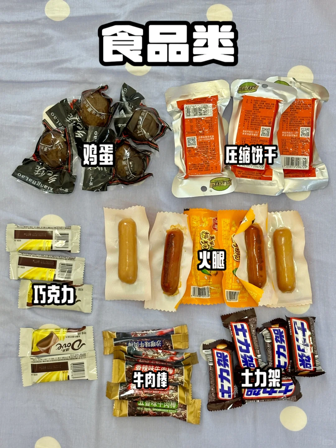 士力架,巧克力,牛肉,压缩饼干,卤蛋,火腿肠
