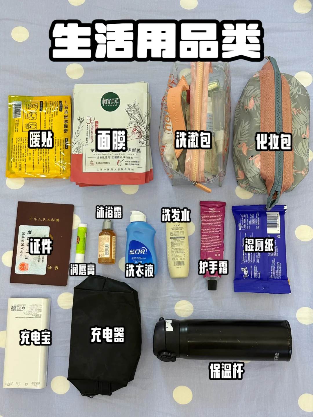 证件 洗漱用品 化妆品 面膜 暖贴 湿厕纸 卫生纸