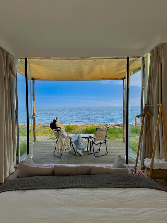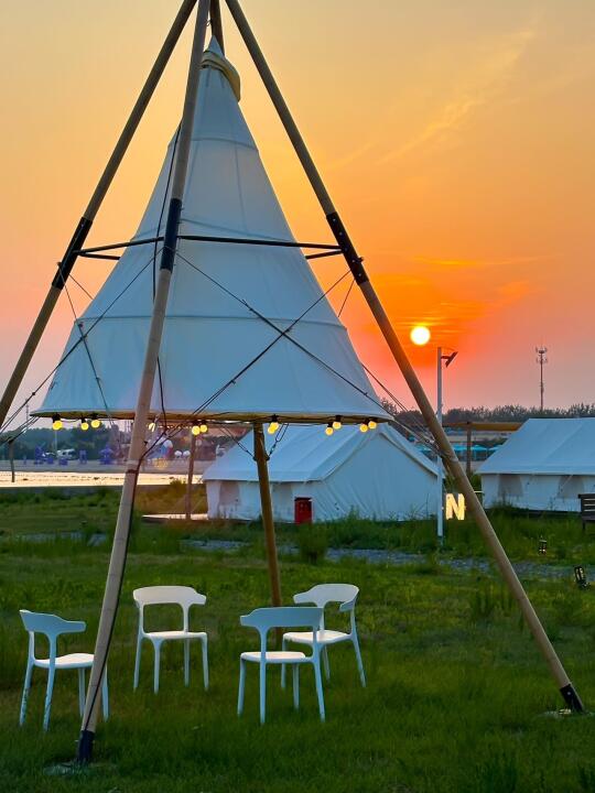 在秦皇岛!拍到了绝美日落🌇 秦皇岛的宝藏露营地被我找到啦~ 在床上就可以看到绝美的日落! 而且房间设施齐全!也有空调~直接就是领包入住! 远离城市的喧嚣!周六日带着家人来这边放松一下真的很不错😌 - 草原!日落!大海!露营!烧烤!电影!咖啡!篝火晚会!各种儿童游乐设施!在这里统统都有! 还有各种网红拍照打卡点📸 还有乐岛快速通道哦📣 - 🌊:浪山海轻奢营地